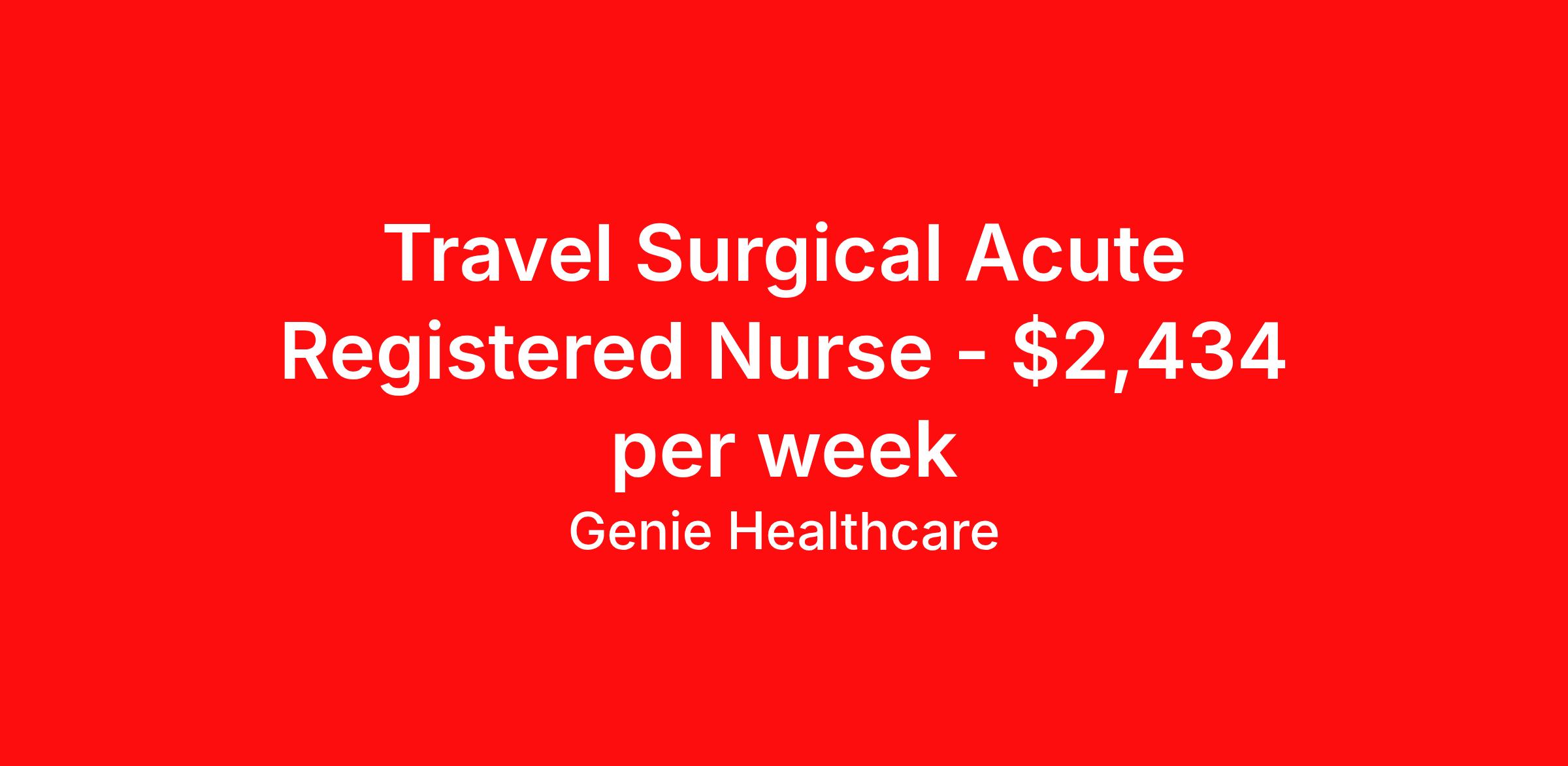 Genie Healthcare is seeking a travel nurse RN Med Surg for a travel nursing job in Peoria, Illinois. Job Description & Requirements Specialty: Med Surg Discipline: RN Start Date: 03/30/2026 Duration: 13 weeks 36 hours per week Shift: 12 hours, nights Employment Type: Travel Genie Healthcare is looking for a RN to work in MedSurg for a 13 weeks travel assignment located in Peoria, IL for the Shift (3x12 nights, 19:00:00-07:00:00, 12.00-3). Pay and benefits packages are estimated based on client bill rate at time the job was posted. These rates are subject to change. Exact pay and benefits vary based on several things, including, but not limited to, guaranteed hours, client changes in bill rate, experience, etc. Benefits: Medical Insurance, Dental Insurance, Vision Insurance, 401(k) with company matching (50% up to 6% of what you contribute) Genie Healthcare Job ID 17973375. Pay package is based on 12 hour shifts and 36.0 hours per week (subject to confirmation) with tax-free stipend amount to be determined. Posted job title: RN:MedSurg,19:00:00-07:00:00 About Genie Healthcare Genie Healthcare is one of the fastest growing Nurse Travel Agencies in the USA. Genie serves hundreds of facilities and has over 4000 current travel RN contracts open at any given time. Genie provides travel RN’s flexibility, support, top pay scale, housing and the 1 rated, multi-state health insurance coverage. Genie Healthcare carries with it a commitment to providing a comprehensive level of service and quality care. Growing from a small team of eager recruiters to a company with satisfied clients in nearly every corner of the nation, delivering excellence in patient and customer care is the key to Genie’s success. The management team has 20 years of experience in workforce solutions and staffing in medical and non-medical fields, roles ranging from Clerical job to Cardiologist to software developer to CEO.