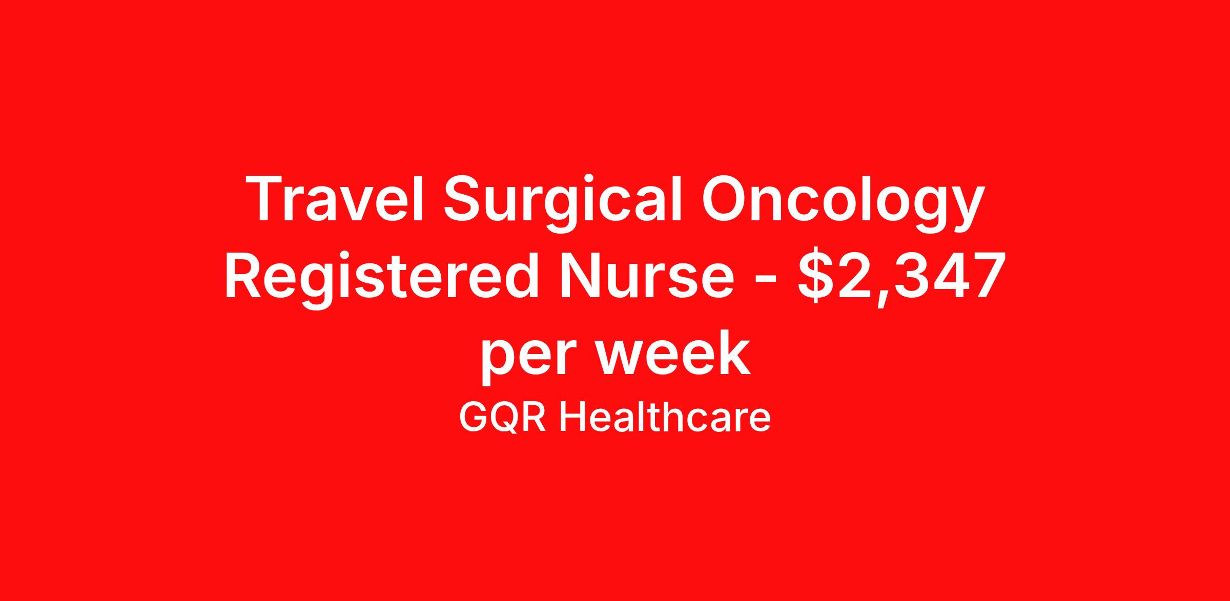 Travel Surgical Oncology Registered Nurse - $2,347 per week