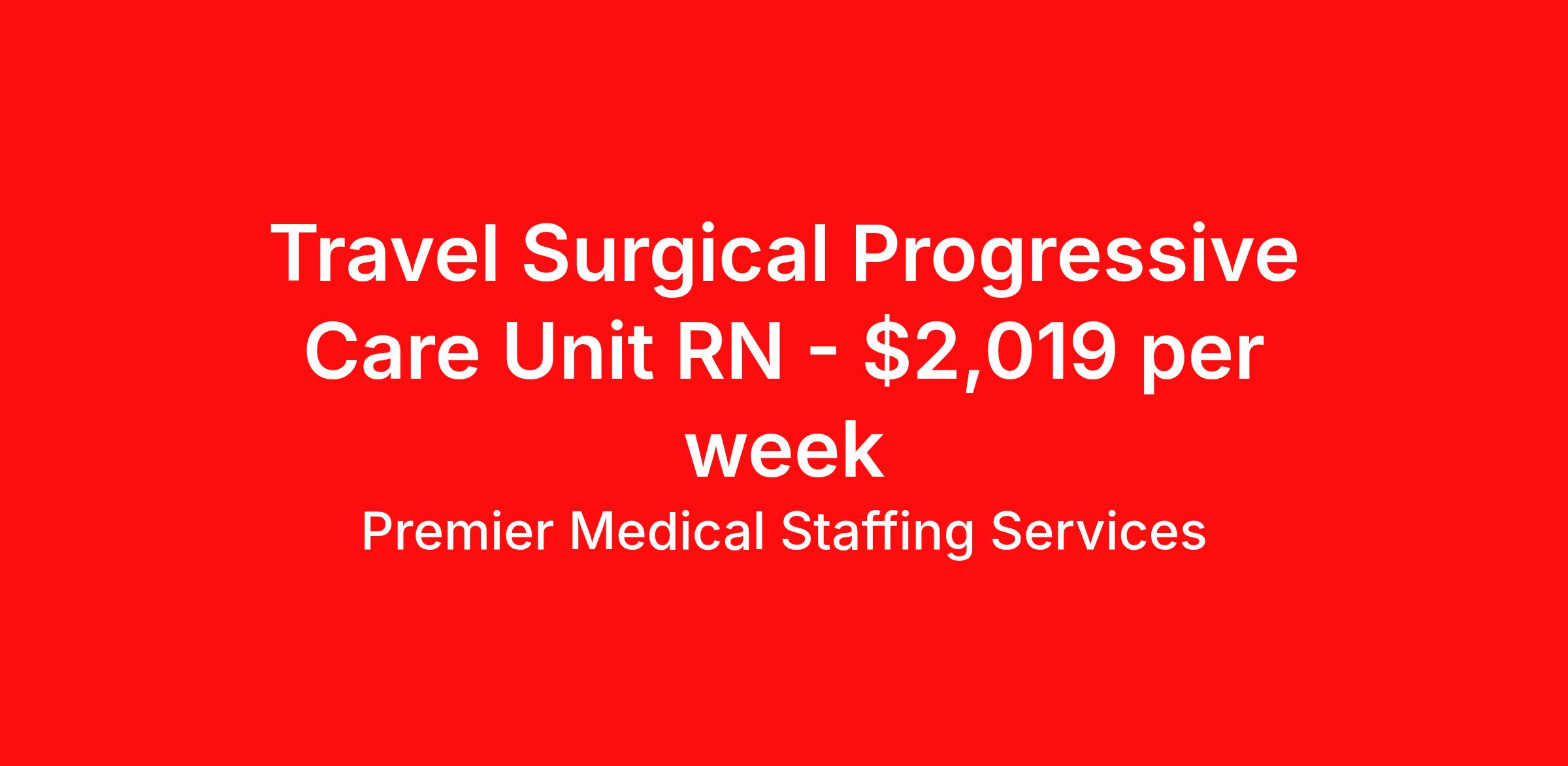 Premier Medical Staffing Services is seeking a travel nurse RN PCU - Progressive Care Unit for a travel nursing job in Indianapolis, Indiana. Job Description & Requirements Specialty: PCU - Progressive Care Unit Discipline: RN Start Date: ASAP Duration: 13 weeks 36 hours per week Shift: 12 hours Employment Type: Travel Premier Medical Staffing Job ID 606479. Pay package is based on 12 hour shifts and 36 hours per week (subject to confirmation) with tax-free stipend amount to be determined. Posted job title: RN PCU About Premier Medical Staffing Services Premier Medical Staffing Services, LLC is a nationally expanding healthcare staffing firm for healthcare professionals and companies. We understand our clients’ need for highly qualified, expertly trained medical professionals and are passionate about helping clinicians find employment opportunities that fit their personality and needs. Able to accommodate the ever-changing needs of the healthcare landscape, we offer per-diem, contract and direct hire placements to support the unique needs of each industry sector. Premier Medical Staffing Services is Joint Commission Certified, a Military Spouse Employment Partner and is certified as a Women’s Business Enterprise. We are proudly nurse owned.