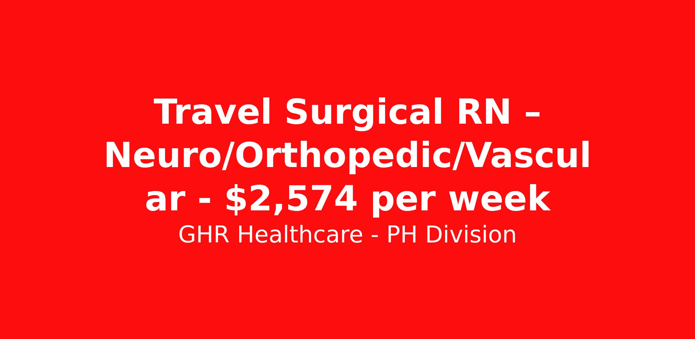 GHR Healthcare - PH Division is seeking a travel nurse RN Neurosurgery for a travel nursing job in Cleveland, Ohio. Job Description & Requirements Specialty: Neurosurgery Discipline: RN Start Date: 05/04/2026 Duration: 12 weeks 36 hours per week Shift: 12 hours Employment Type: Travel Planet Healthcare Job ID 75756188. Pay package is based on 12 hour shifts and 36 hours per week (subject to confirmation) with tax-free stipend amount to be determined. About GHR Healthcare - PH Division For over 30 years, GHR Healthcare has been the bridge between healthcare professionals and the facilities that need them nationwide. We're committed to uncovering your ideal fit, supported by GHR's dedication to competitive compensation, transparent communication, and a devoted team that genuinely cares about your career journey. You can trust us to stand by your side as your advocate, confidante, and partner in advancing your career. At GHR, care and consideration are at the heart of everything we do. Visit ghrhealthcare.com to learn more.