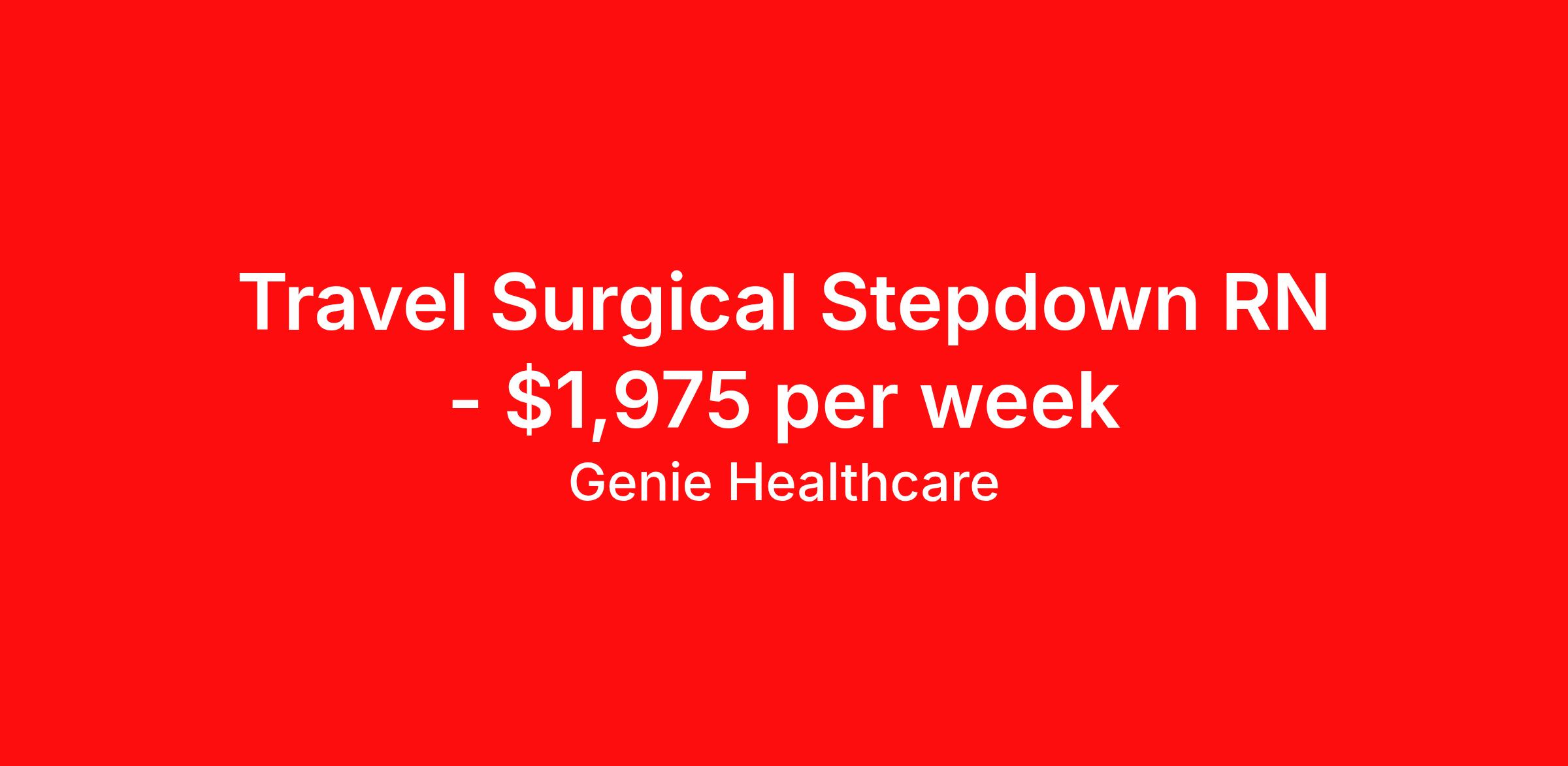 Genie Healthcare is seeking a travel nurse RN PCU - Progressive Care Unit for a travel nursing job in Saint Louis, Missouri. Job Description & Requirements Specialty: PCU - Progressive Care Unit Discipline: RN Start Date: 04/13/2026 Duration: 13 weeks 36 hours per week Shift: 12 hours, nights Employment Type: Travel Genie Healthcare is looking for a RN to work in Stepdown for a 13 weeks travel assignment located in Saint Louis, MO for the Shift (3x12 nights, 19:00:00-07:00:00, 12.00-3). Pay and benefits packages are estimated based on client bill rate at time the job was posted. These rates are subject to change. Exact pay and benefits vary based on several things, including, but not limited to, guaranteed hours, client changes in bill rate, experience, etc. Benefits: Medical Insurance, Dental Insurance, Vision Insurance, 401(k) with company matching (50% up to 6% of what you contribute) Genie Healthcare Job ID 17991640. Pay package is based on 12 hour shifts and 36.0 hours per week (subject to confirmation) with tax-free stipend amount to be determined. Posted job title: RN:Stepdown,19:00:00-07:00:00 About Genie Healthcare Genie Healthcare is one of the fastest growing Nurse Travel Agencies in the USA. Genie serves hundreds of facilities and has over 4000 current travel RN contracts open at any given time. Genie provides travel RN’s flexibility, support, top pay scale, housing and the 1 rated, multi-state health insurance coverage. Genie Healthcare carries with it a commitment to providing a comprehensive level of service and quality care. Growing from a small team of eager recruiters to a company with satisfied clients in nearly every corner of the nation, delivering excellence in patient and customer care is the key to Genie’s success. The management team has 20 years of experience in workforce solutions and staffing in medical and non-medical fields, roles ranging from Clerical job to Cardiologist to software developer to CEO.