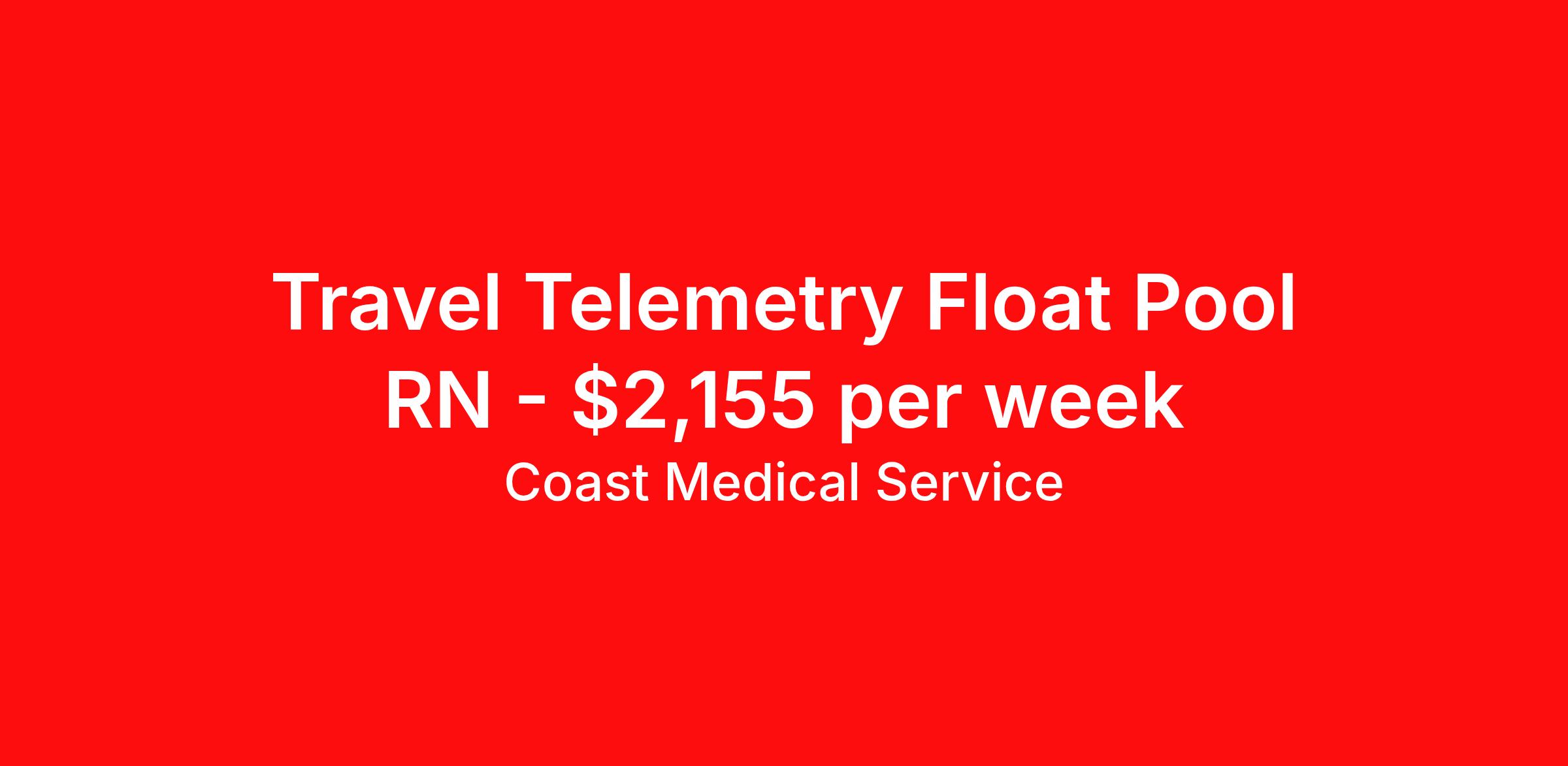 Coast Medical Service is seeking a travel nurse RN Float Telemetry Med Surg for a travel nursing job in Salem, Massachusetts. Job Description & Requirements Specialty: Telemetry Discipline: RN Start Date: 05/17/2026 Duration: 13 weeks 36 hours per week Shift: 12 hours, nights Employment Type: Travel Coast Medical Service is a nationwide travel nursing & allied healthcare staffing agency dedicated to providing an elite traveler experience for the experienced or first-time traveler. Coast is featured on Blue Pipes' 2023 Best Travel Agencies and named a 2022 Top Rated Healthcare Staffing Firm & 2023 First Half Top Rated Healthcare Staffing Firm by Great Recruiters. Please note that pay rate may differ for locally based candidates. Please apply here or contact a recruiter directly to learn more about this position & the facility, and/or explore others that may be of interest to you. We look forward to speaking with you! Coast Medical Services Job ID 36495853. Pay package is based on 12 hour shifts and 36.0 hours per week (subject to confirmation) with tax-free stipend amount to be determined. Posted job title: RN:Telemetry,19:00:00-07:30:00