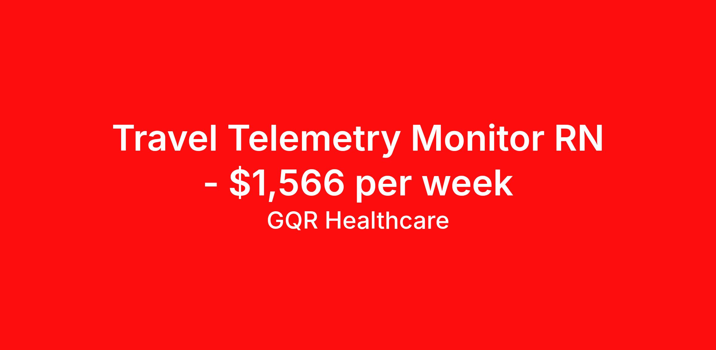 GQR Healthcare is seeking a travel nurse RN Telemetry for a travel nursing job in Tucson, Arizona. Job Description & Requirements Specialty: Telemetry Discipline: RN Start Date: ASAP Duration: 13 weeks 36 hours per week Shift: 12 hours, nights Employment Type: Travel Telemetry TECH Job Location: Tucson, AZ Profession: Technologist Estimated Pay: $1566.00 Duration (weeks): 13 Specialty: Telemetry Shift Details: Night *Estimated weekly pay includes projected hourly wages and weekly meal and lodging per diems for eligible clinicians based on nationally published GSA rates. Actual weekly pay and per diems may differ from the amount shown and are subject to change during an assignment. Benefits: Day 1 Insurance Cigna medical, MetLife dental and vision insurance License reimbursement for new licenses needed for each assignment Discounts with hotels and rental cars A dedicated recruiter and support team that will help you every step of the way to sure you start on time and have an exceptional experience Referral bonus up to $700 About the Company: Finding the right role is about more than just matching skills to a job—it’s about aligning with your goals, values, and the way you want to work. As an award-winning talent partner, we support healthcare professionals through every step of that process, offering meaningful opportunities, clear guidance, and long-term partnership. From our first conversation to your first day on the job (and beyond!), we’re here to help you move forward with confidence. GQR Job ID 788081. Pay package is based on 12 hour shifts and 36 hours per week (subject to confirmation) with tax-free stipend amount to be determined. Posted job title: EKG Tech About GQR Healthcare GQR’s Healthcare team specializes in connecting experts within the industry to highly skilled healthcare professionals across the US market. In the competitive healthcare market, we recognize that the industry’s common goals of improved quality of care and patient outcomes are wholly reliant upon the professionals directly supporting these initiatives. Leveraging our extensive candidate network, we deliver continuity of care for the communities our partners serve to ensure the patient experience is of the highest quality. Through deep market specialization and a unique approach to talent acquisition, GQR Healthcare provides an unparalleled and personalized experience across all medical specialties in nursing and within diverse healthcare platforms across the industry.