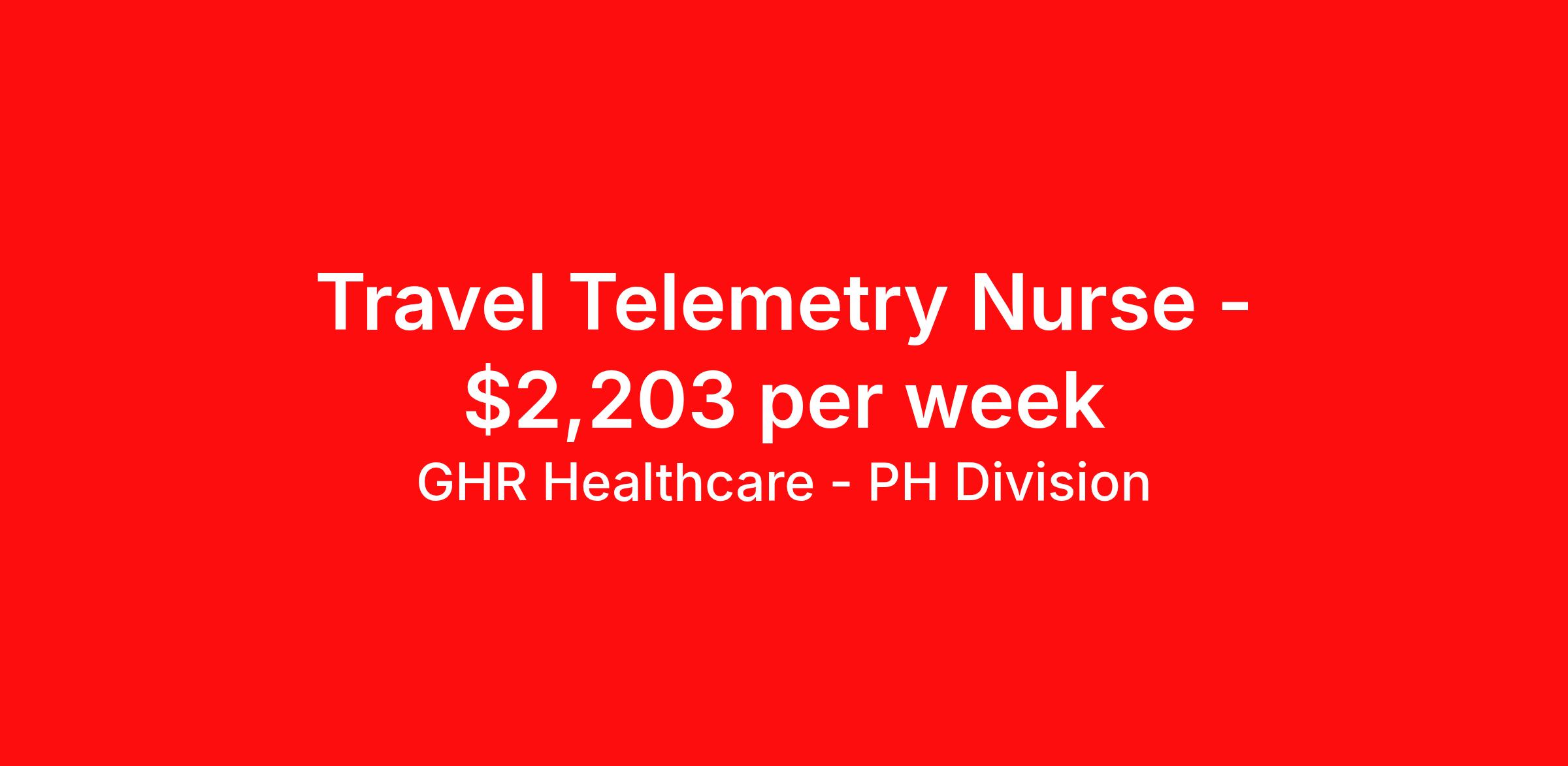 GHR Healthcare - PH Division is seeking a travel nurse RN Telemetry for a travel nursing job in Altoona, Pennsylvania. Job Description & Requirements Specialty: Telemetry Discipline: RN Start Date: 04/06/2026 Duration: 12 weeks 36 hours per week Shift: 12 hours Employment Type: Travel Planet Healthcare Job ID 69270404. Pay package is based on 12 hour shifts and 36 hours per week (subject to confirmation) with tax-free stipend amount to be determined. About GHR Healthcare - PH Division For over 30 years, GHR Healthcare has been the bridge between healthcare professionals and the facilities that need them nationwide. We're committed to uncovering your ideal fit, supported by GHR's dedication to competitive compensation, transparent communication, and a devoted team that genuinely cares about your career journey. You can trust us to stand by your side as your advocate, confidante, and partner in advancing your career. At GHR, care and consideration are at the heart of everything we do. Visit ghrhealthcare.com to learn more.