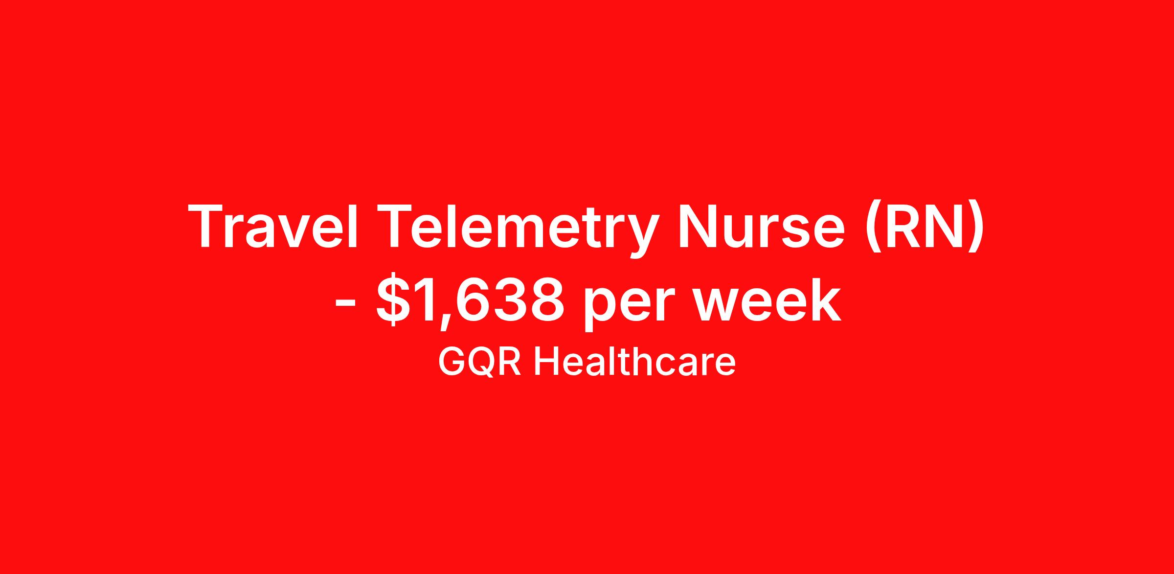GQR Healthcare is seeking a travel nurse RN Telemetry for a travel nursing job in Waco, Texas. Job Description & Requirements Specialty: Telemetry Discipline: RN Start Date: ASAP Duration: 13 weeks 36 hours per week Shift: 12 hours, nights Employment Type: Travel GQR Healthcare is representing a well-known health system seeking experienced Medical/Surgical/Telemetry providers to add to their team. If you are passionate about providing exceptional care and looking to explore a rewarding career opportunity, we'd love to hear from you! Apply now, and a dedicated GQR consultant will connect with you to discuss the role, answer your questions, and guide you through the process. About GQR Healthcare: At GQR Healthcare, we are committed to supporting healthcare professionals at every stage of their careers. When you partner with us, you gain access to a wide range of benefits and support, including: Day 1 Benefits: Enjoy comprehensive healthcare coverage, including medical, dental, and vision plans, starting on your first day. Guaranteed Hours: We provide contract stability by offering guaranteed hours, ensuring you have the predictability you need. Continuing Education & Development: We invest in your growth by offering opportunities for professional development and ongoing education. 24/7 Consultant Support: Our dedicated consultants are available around the clock to assist with any needs or questions you have. Seamless Placement Process: We handle all the details, from onboarding to interviews, so you can focus on what you do best - providing exceptional patient care. Partnering with GQR means more than just finding your next job - it's about building a meaningful career with a team that truly supports your goals. GQR Job ID 220113. Pay package is based on 12 hour shifts and 36 hours per week (subject to confirmation) with tax-free stipend amount to be determined. Posted job title: Registered Nurse (RN) About GQR Healthcare GQR’s Healthcare team specializes in connecting experts within the industry to highly skilled healthcare professionals across the US market. In the competitive healthcare market, we recognize that the industry’s common goals of improved quality of care and patient outcomes are wholly reliant upon the professionals directly supporting these initiatives. Leveraging our extensive candidate network, we deliver continuity of care for the communities our partners serve to ensure the patient experience is of the highest quality. Through deep market specialization and a unique approach to talent acquisition, GQR Healthcare provides an unparalleled and personalized experience across all medical specialties in nursing and within diverse healthcare platforms across the industry.