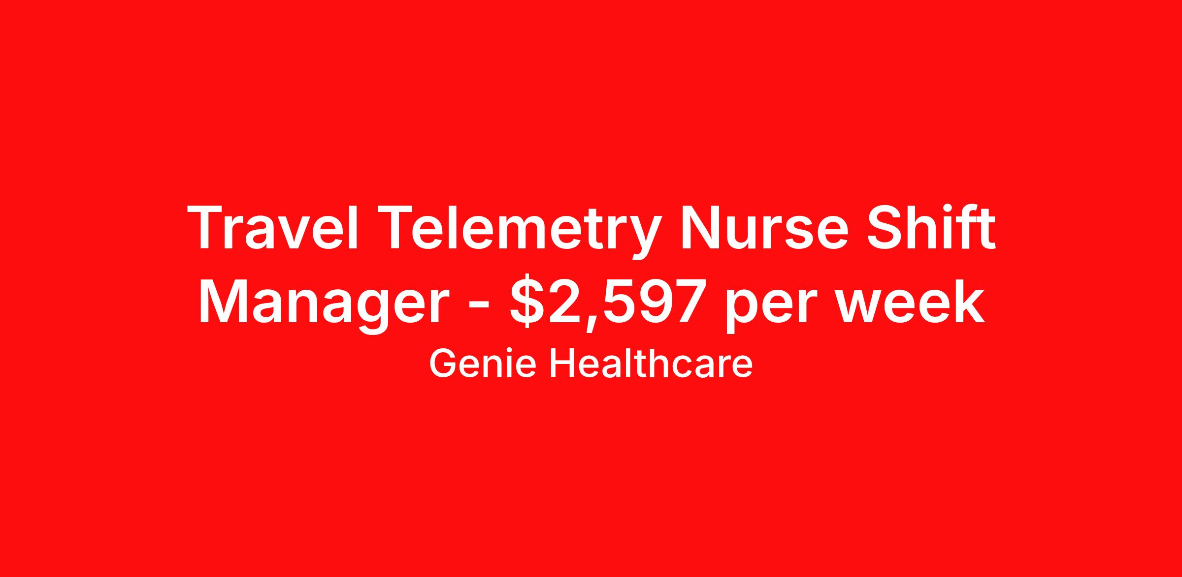 Genie Healthcare is seeking a travel nurse RN Telemetry for a travel nursing job in Bakersfield, California. Job Description & Requirements Specialty: Telemetry Discipline: RN Start Date: ASAP Duration: 16 weeks 36 hours per week Shift: 12 hours, nights Employment Type: Travel Genie Healthcare is looking for a RN to work in Telemetry for a 16 weeks travel assignment located in Bakersfield, CA for the Shift (3x12 nights, 19:00:00-07:00:00, 12.00-3). Pay and benefits packages are estimated based on client bill rate at time the job was posted. These rates are subject to change. Exact pay and benefits vary based on several things, including, but not limited to, guaranteed hours, client changes in bill rate, experience, etc. Benefits: Medical Insurance, Dental Insurance, Vision Insurance, 401(k) with company matching (50% up to 6% of what you contribute) Genie Healthcare Job ID 17952807. Pay package is based on 12 hour shifts and 36.0 hours per week (subject to confirmation) with tax-free stipend amount to be determined. Posted job title: RN:Telemetry,19:00:00-07:00:00 About Genie Healthcare Genie Healthcare is one of the fastest growing Nurse Travel Agencies in the USA. Genie serves hundreds of facilities and has over 4000 current travel RN contracts open at any given time. Genie provides travel RN’s flexibility, support, top pay scale, housing and the 1 rated, multi-state health insurance coverage. Genie Healthcare carries with it a commitment to providing a comprehensive level of service and quality care. Growing from a small team of eager recruiters to a company with satisfied clients in nearly every corner of the nation, delivering excellence in patient and customer care is the key to Genie’s success. The management team has 20 years of experience in workforce solutions and staffing in medical and non-medical fields, roles ranging from Clerical job to Cardiologist to software developer to CEO.