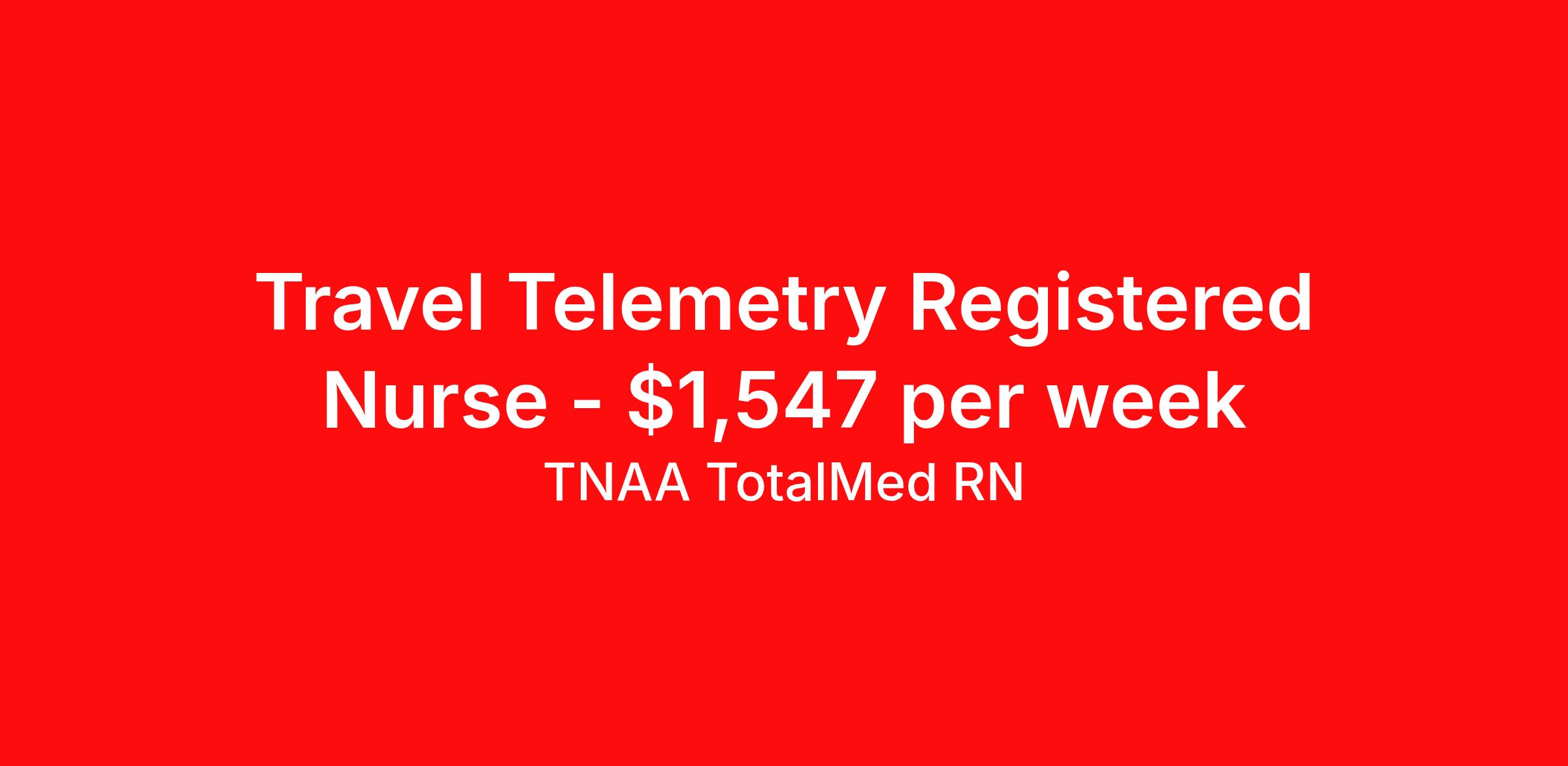 TNAA TotalMed RN is seeking a travel nurse RN Telemetry for a travel nursing job in Springdale, Arkansas. Job Description & Requirements Specialty: Telemetry Discipline: RN Duration: 13 weeks 36 hours per week Shift: 12 hours, nights Employment Type: Travel We're looking for Telemetry RNs for an immediate travel nurse opening in Springdale, AR. The right RN should have 1-2 years' recent acute care experience. Read below for more requirements. As a TELE Travel Nurse, you will provide care by connecting patients to machines that measure heart rate, blood pressure, breathing rate, as well as blood-oxygen levels and electrocardiogram information. These machines then send data to computer screens for RNs to monitor. Telemetry RNs read and interpret the data to better determine patient care. As a TELE Travel Nurse, you should be prepared to perform the following tasks: Provide basic bedside care. Monitor and adjust specialized equipment used on patients, and interpret and record electronic displays. Identify irregular telemetry readings and notify appropriate medical team members. Initiate corrective action whenever information from monitoring equipment shows adverse symptomatology. TELE Travel Nurses should be able to stand and walk for long periods of time, as well as bend, lean and stoop without difficulty. RNs should be able to easily lift 20 pounds. Moving or lifting of patients may require lifting of up to 50 pounds at times. RNs must have specific vision abilities including close vision, distance vision, color vision, peripheral vision, depth perception and ability to adjust focus. Requirements*: ACLS, BLS, 2 Years * Additional certifications may be required before beginning an assignment. TotalMed Travel Job ID 1387457. Pay package is based on 12 hour shifts and 36 hours per week (subject to confirmation) with tax-free stipend amount to be determined. Posted job title: Telemetry - TELE RN - Travel Nurse About TNAA TotalMed RN TotalMed is a Top Ten, travel nursing and healthcare staffing agency with the mission of igniting purpose in healthcare. The organization staffs nurses, therapists, pharmacists, and other clinicians of all specialties in all 50 states. They offer local and travel jobs and match caregivers with the right organization to assist both facilities and patients. As an organization, they focus on putting highly-skilled staff into facilities to ensure adequate staffing for a better patient experience. TotalMed specializes in recruiting and placing healthcare professionals in travel, PRN, and permanent positions across the country in Nursing and Allied Health. Throughout 2020, the organization filled roles at even the most short-staffed facilities during the most challenging time in healthcare. By matching the right travel healthcare professional with the right organization, TotalMed continues to offer a lifeline to facilities and their patients. Benefits Weekly pay Guaranteed Hours Continuing Education 401k retirement plan Sick pay Wellness and fitness programs Referral bonus Employee assistance programs Medical benefits Dental benefits Vision benefits Benefits start day 1