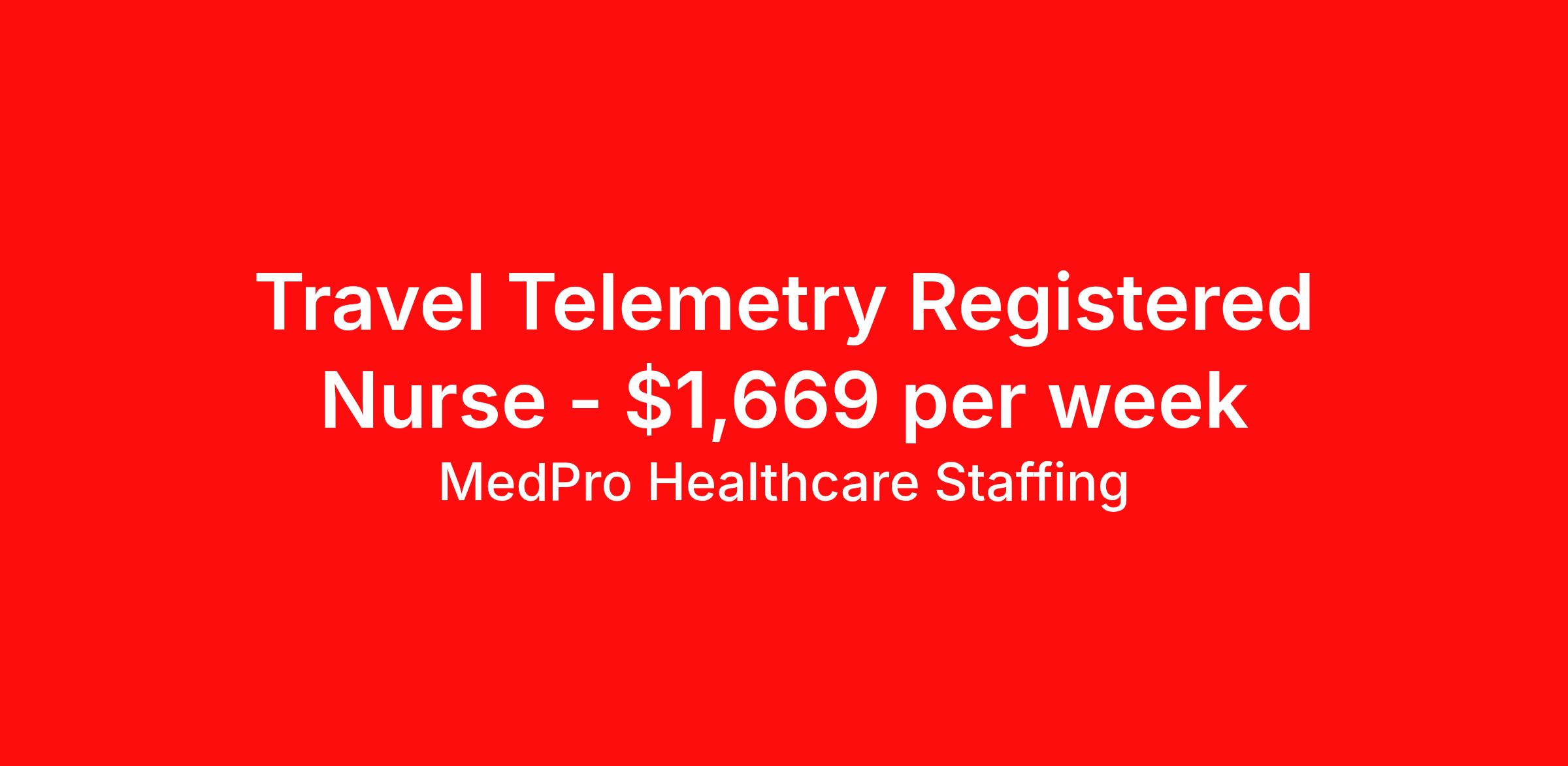 MedPro Healthcare Staffing is seeking a travel nurse RN Telemetry for a travel nursing job in Tyler, Texas. Job Description & Requirements Specialty: Telemetry Discipline: RN Start Date: 04/20/2026 Duration: 13 weeks 36 hours per week Shift: 12 hours, days Employment Type: Travel MedPro Healthcare Staffing , a Joint Commission-certified staffing agency, is seeking a quality Telemetry registered nurse for a travel assignment with one of our top healthcare clients. Requirements Active RN License Degree from accredited nursing program BLS & ACLS Certifications Eighteen months of recent experience in an Acute Care Telemetry setting Other requirements to be determined by our client facility Benefits Weekly pay and direct deposit Full coverage of all credentialing fees Private housing or housing allowance Group Health insurance for you and your family Company-paid life and disability insurance Travel reimbursement 401(k) matching Unlimited Referral Bonuses up to $1,000 Duties Responsibilities As part of the telemetry unit, Telemetry Nurses (RN) provide care by connecting patients to machines that measure heart rate, blood pressure, breathing rate, as well as blood-oxygen levels and electrocardiogram information. These machines then send data to computer screens for nurses to monitor. Telemetry Nurses read and interpret the data to better determine patient care. Provide care for patients by comfortably connecting them to machines that measure blood pressure, heart rate, breathing rate, blood-oxygen level, and electrocardiogram information. Monitor and interpret data to assess any potential health problems and needs. Develop nursing care plans and maintaining accurate medical records. About Agency MedPro Healthcare Staffing is a Joint Commission certified provider of contract staffing services. Since 1983, we have placed nursing and allied travelers in top healthcare facilities nationwide. Join us today for your very own MedPro Experience®. If qualified and interested, please call for immediate consideration. MedPro Staffing is an Equal Opportunity Employer. All applicants will be considered for employment without attention to race, color, religion, national origin, age, sex, disability, marital status or veteran status. Key Words: Telemetry Nurse, RN-Tele, Telemetry Nursing positions, Travel Nurse, Contract Nurse, Agency Nurse, EKG, Tele, Telemetry Contracts, Registered Nurse, Telemetry Nurse, Tele Nurse, RN, Registered Nurse, Telemetry Nurse, RN-Tele, Travel Nursing *Weekly payment estimates are intended for informational purposes only and include a gross estimate of hourly wages and reimbursements for meal, incidental, and housing expenses. Your recruiter will confirm your eligibility and provide additional details. MedPro Job ID a0Fcx00000GEYjlEAH. Pay package is based on 12 hour shifts and 36 hours per week (subject to confirmation) with tax-free stipend amount to be determined. Posted job title: Telemetry Registered Nurse Nursing: Telemetry. About MedPro Healthcare Staffing At MedPro Healthcare Staffing , we believe no one cares more for caregivers than we do. Our mission is simple: you focus on your patients, and we’ll take care of the rest. As a Joint Commission-certified leader in temporary and contract healthcare staffing since 1983, MedPro has proudly connected nursing and allied travelers with top healthcare facilities across the nation. With thousands of job opportunities available nationwide, we make it easy to find assignments that align with your goals and lifestyle. Our on-staff clinical support team—alongside a compassionate group of experienced recruiters—provides hands-on guidance every step of the way. From Day 1 medical benefits and a 401(k) plan to personalized career support, we’re committed to ensuring every professional we serve feels valued, cared for, and empowered to succeed. Guided by a CEO who is a Registered Nurse, MedPro is built on a foundation of clinical insight and genuine compassion for the caregiving community. Through The MedPro Experience® , we deliver travel assignments that are rewarding, memorable, and designed to help you DREAM big, EXPLORE often, and ACHIEVE greatness. Benefits Day 1 medical, dental, and vision benefits for you and your family Weekly pay and direct deposit Unlimited Referral Bonuses starting at $500 On Staff Clinical Support Team Access to nationwide travel assignments MPX Mobile app -24/7 real-time access to jobs, credentials, assignment details, and more Full coverage of all credentialing fees Private housing or housing allowance Tax Free Per Diems, Housing Stipends and Travel Reimbursements Company-paid life and disability insurance Travel reimbursement 401(k) matching Benefits Weekly pay Referral bonus Employee assistance programs