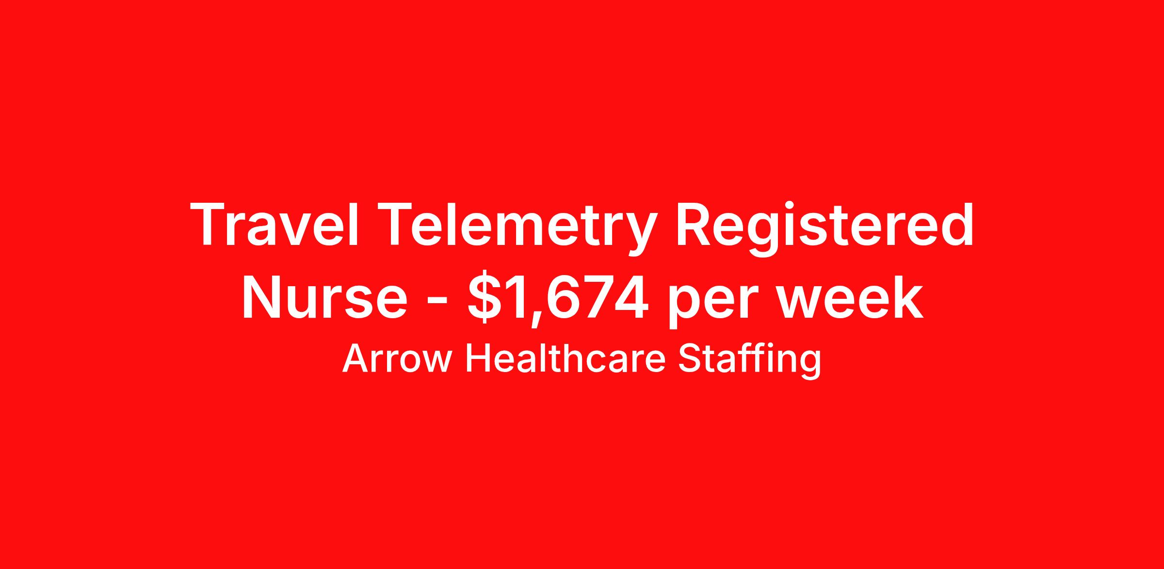 Arrow Healthcare Staffing is seeking a travel nurse RN Telemetry for a travel nursing job in Columbia, South Carolina. Job Description & Requirements Specialty: Telemetry Discipline: RN Start Date: 04/13/2026 Duration: 13 weeks 36 hours per week Shift: 12 hours, nights Employment Type: Travel Arrow Healthcare Staffing Job ID 17990985. Pay package is based on 12 hour shifts and 36.0 hours per week (subject to confirmation) with tax-free stipend amount to be determined. Posted job title: RN - Telemetry RN Telemetry About Arrow Healthcare Staffing Arrow Healthcare Staffing is a Midwest based travel nursing and allied health recruiting firm. We specialize in local/ travel nursing, medical laboratory, pharmacy, radiology/imaging, therapy, and executive/leadership recruitment. We offer direct hospital contracts and all of the top benefits in the marketplace today. Benefits Medical benefits Vision benefits Weekly pay Benefits start day 1 Holiday Pay 401k retirement plan Dental benefits License and certification reimbursement Guaranteed Hours Continuing Education Cancelation protection Mileage reimbursement Referral bonus