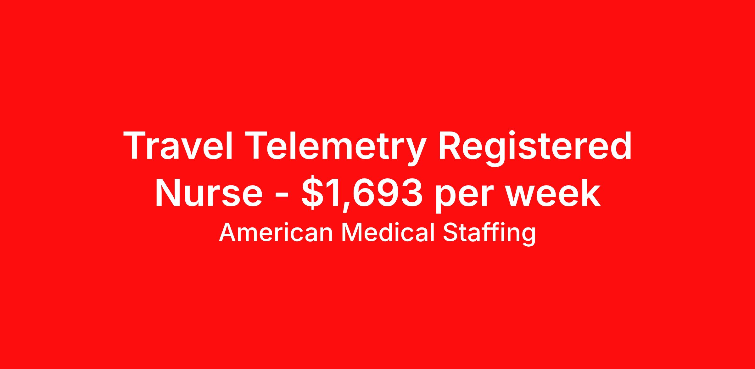 American Medical Staffing is seeking a travel nurse RN Telemetry for a travel nursing job in Augusta, Georgia. Job Description & Requirements Specialty: Telemetry Discipline: RN Start Date: 04/13/2026 Duration: 12 weeks 36 hours per week Shift: 12 hours, nights Employment Type: Travel We’re living in the new normal. Lives and careers look different today. So why shouldn’t you have a role that delivers excitement, fewer restrictions, and brings you closer to loved ones? At American Medical Staffing (AMS), we believe in supporting the pioneers who embody the sense of adventure each new placement brings and we’re looking for a RN: Tele for our Hospital contract assignment. Job Title : RN: Tele Location : Augusta, Georgia Pay Range : Competitive, Negotiable, with Weekly Pay Schedule : 12-Hour Nights, 19:00:00-07:00:00, 12.00-3 Contract Length : 13 Weeks Requirements : · 2 years of experience as a RN · Qualified applicants MUST have at least 2 years of experience in the Tele · Valid RN license · Be willing to obtain Georgia licensure Why Choose American Medical Staffing? · Day-One Benefits : Medical, dental, and vision plans with no waiting period. · Wellness PTO : Build 1 or 2 weeks of paid time off into your contract. · Hotel Discounts : Save up to 60% on hotel bookings with access to 700,000 discounted properties. · Loyalty Program : Earn financial incentives automatically based on hours worked and assignment type. · Referral Program : $500 for you and $500 for each referral after 450 hours—no limits. · Working Advantage : Access exclusive discounts on retail, entertainment, and travel. · Scrub Discount : 20% off all scrubs through our customized AMS store. · Retirement Plans : 401(k) options to help you plan for the future. · Compliance & Credentialing Support : Let us handle the logistics so you can focus on patient care. Responsibilities · Deliver specialized care to patients across a variety of acute and subacute units. · Work closely with a multidisciplinary team of healthcare professionals to provide comprehensive and compassionate care. · Monitor patient conditions, administer treatments and document outcomes. · Advocate for the best possible patient experience while supporting recovery, safety, and continuity of care. Apply now to take the next step in your journey. American Medical Staffing is an Equal Employment Opportunity Employer and does not discriminate on the basis of race, color, religion, sex, national origin, sexual orientation, gender identity, disability, age, or any other non-merit factor. American Medical Staffing Job ID 106945. Pay package is based on 12 hour shifts and 36.0 hours per week (subject to confirmation) with tax-free stipend amount to be determined. Posted job title: RN:Tele,19:00:00-07:00:00 About American Medical Staffing American Medical Staffing is a staffing agency headquartered in Baltimore, MD. Our goal is to CREATE an extraordinary experience for our health care professionals. Our roots are nurse owned and operated so we know what clinicians want - lots of options, a smooth and informed placement process, competitive and accurate pay, great customer service and responsiveness to requests, and advocacy when there is an issue. When AMS was founded in 2001, we started our company with a mission to be a better agency than our competitors. We have always put a heavy emphasis into what is best for our employees, not necessarily just our clients or our company. You are not an expense as you may be to a hospital; you are an asset. We take employee advocacy seriously; you are not just a number to us. The end result is that you don`t work for us; we work for you. Since starting in Baltimore, MD, we continue to grow throughout the country. Check out our industry leading reviews on Google and Indeed to see how much our clinicians enjoy working with us! · Benefits: AMS offers an array of benefits for any employee working 30 hours or more! Those eligible employees who choose to participate will pay the premiums with deductions from their pre-tax earnings. We offer a complete benefits package including Health Insurance, 401K with up to 2% match, Life, Vision, and Dental. From health and wellness support, financial or legal needs, or help with life's everyday challenges, our Employee Assistance Program provides you with resources, services and discounts to help you manage your unique concerns and save time, energy and money. We also offer additional Employee Perks that you can enjoy as an AMS employee: Scrubin – Uniform Discounts Working Advantage – unlimited access to thousands of exclusive discounts and special offers nationwide for theme parks, shows, tours, attractions, sports, concerts, hotels, rental cars, retail gift cards, movie tickets and much more Hotel Engine - Save up to 60% when booking hotel rooms, with access to more than 700,000 deeply discounted hotels worldwide. Discounted Pet Insurance Wellness Program, including fitness, nutrition and financial wellness Betterhelp - 1 month of free therapy, followed by a discounted rate for our Healthcare Professionals and their family members. Win Win Referral Bonus - $500 for you, and $500 for them! Benefits 401k retirement plan Life insurance Medical benefits Dental benefits Vision benefits