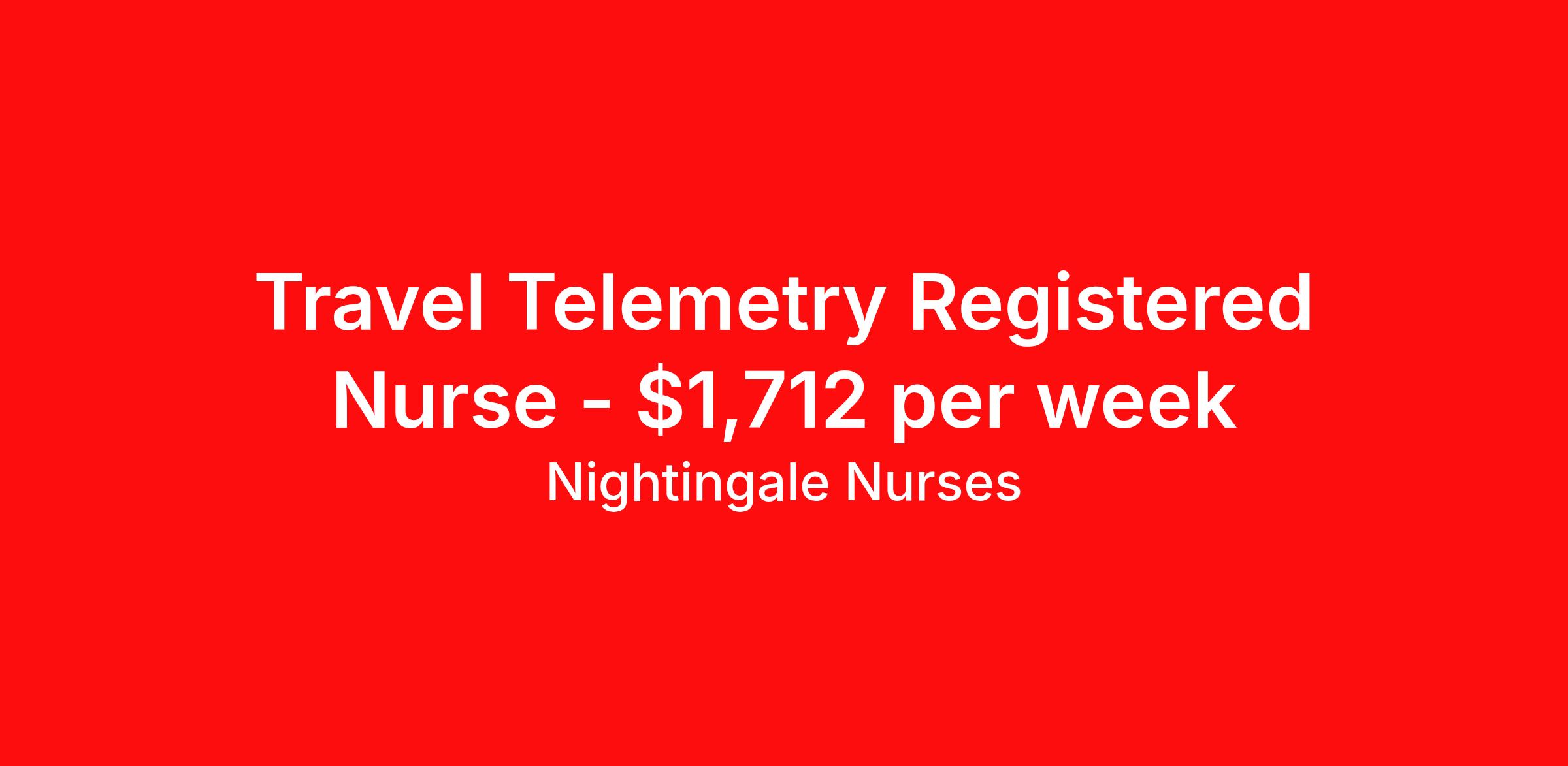 Nightingale Nurses is seeking a travel nurse RN Telemetry for a travel nursing job in Alabaster, Alabama. Job Description & Requirements Specialty: Telemetry Discipline: RN Start Date: 04/05/2026 Duration: 13 weeks 36 hours per week Shift: 12 hours, nights Employment Type: Travel About Nightingale Nurses the first name in travel nursing You may not realize it, but as an RN with real world hospital experience, you are legendary. To the lives you’ve helped save, the patients you’ve cared for, and to the hospitals where you’ve done it. And you’re just getting started. Legendary is where Nightingale begins. We’re the first name in travel nursing, representing only the very best RNs. That’s why hospitals prefer us, allowing us to offer exceptional travel nursing assignments all over the US, as well as the highest pay rates and most extensive benefits in the industry. Nightingale facilitates every aspect of your travel nursing assignment, so you can focus on doing what you do best. We want you to grow, explore, and enjoy unrivaled liberty, the freedom to nurse.