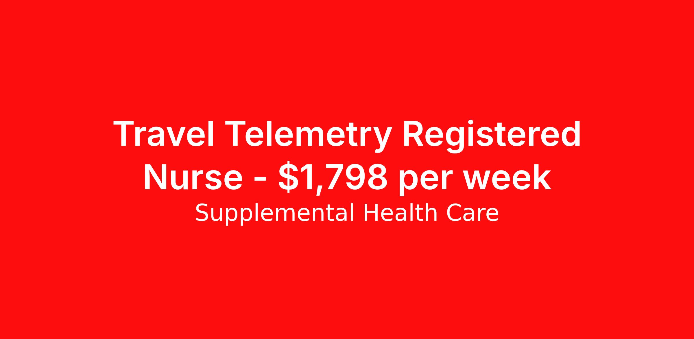 Supplemental Health Care is seeking a travel nurse RN Telemetry for a travel nursing job in Tulsa, Oklahoma. Job Description & Requirements Specialty: Telemetry Discipline: RN Start Date: ASAP Duration: 13 weeks 36 hours per week Shift: 12 hours, nights Employment Type: Travel Job Description: Supplemental Health Care is hiring Telemetry Registered Nurses for contract assignments at partnering hospitals in Tulsa, Oklahoma. Whether you’re looking to travel or stay local, we’re committed to helping Telemetry Registered Nurses find the right fit with top hospitals across the country. With more than 40 years of experience in healthcare staffing, Supplemental Health Care offers reliable support, competitive pay, and great benefits every step of the way. Qualifications: Current Oklahoma Nursing License American Heart Association BLS 2 years of recent Telemetry nursing experience Telemetry RN Contract Details: $1,638 - $1,798 per week* NOC shift available 13-week contract with possibility to extend Review Data to track a patient's heart rate, blood pressure, breathing, and other vitals Administer and record prescribed medications Report adverse reactions to medications or treatments Apply today to get started with this Telemetry Registered Nurse contract opportunity, or talk to our team about the full range of Registered Nurse opportunities available. What We Offer: Full medical, dental, vision, life, and even pet insurance! Round the clock support. No matter where you are or what time it is, Supplemental Health Care is standing by. SHC's Share the Care referral program is the most dynamic, profitable referral program in the industry. 401(k) Retirement Savings Program with a wide range of investment options. Discounted and free online access to CEU courses through Supplemental University. Please speak with a recruiter for details. Supplemental Health Care is an Equal Opportunity Employer. All candidates, including veterans and those with disabilities, are encouraged to apply. SHC will consider for employment qualified applicants with criminal histories in a manner consistent with the requirements of applicable local, state, or federal law. To learn more, visit www.shccares.com/eeo Supplemental Health Care Job ID 1472666. Pay package is based on 12 hour shifts and 36 hours per week (subject to confirmation) with tax-free stipend amount to be determined. Posted job title: Registered Nurse – Telemetry About Supplemental Health Care At Supplemental Health Care, a simple belief in the power of caring guides a unique commitment to world-class service in healthcare staffing. For 40 years, we’ve supported talented professionals pursuing their life calling in hospitals, schools, home health, corrections, behavioral health, and other settings. At SHC, we inspire vital connections and enrich lives and inspire better outcomes. As recipients of the Best in Staffing Awards for both Client and Talent, Supplemental Health Care is proud to be among only 2% of staffing companies singled out for the distinction based on the real feedback of our employees and the clients we serve. SHC has also earned The Joint Commission’s Gold Seal of Approval and is named among the Largest Health Care Staffing companies in the United States by Staffing Industry Analysts. We are also thrilled to recognize our very own SLP, Dr. Kelly Byrd as the American Staffing Association 2024 National Staffing Employee of the Year and Health Care Sector All-Star. We’re honored to connect Dr. Byrd to employment, share her incredible story, and support her family literacy nonprofit. For everyone that we serve, SHC is the place where caring hearts thrive. Benefits Referral bonus Benefits start day 1 401k retirement plan Continuing Education Discount program Health savings account