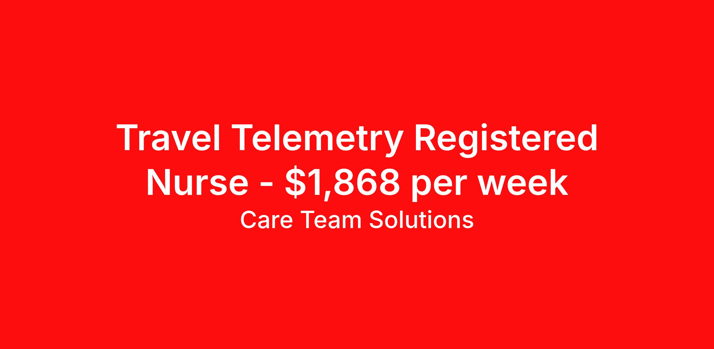 Care Team Solutions is seeking a travel nurse RN Telemetry for a travel nursing job in Asheville, North Carolina. Job Description & Requirements Specialty: Telemetry Discipline: RN Start Date: ASAP Duration: 13 weeks 36 hours per week Shift: 12 hours Employment Type: Travel Registered Nurse must have 2 years of recent experience in particular specialty Details: Must Have 2 Years of recent Telemetry experience. Specialty: Telemetry Discipline: Registered Nurse Start Date: 2026-03-09 Duration: 13 Weeks Shift: 12 Hours Overnight shift. Hours Per Week: 36 Hours Employment Type: Contract Gross Weekly Pay: $1867.97 Six things that won’t happen if you apply to this job: You won’t have to guess what the downsides are. We’ll tell you up front. You won’t show up on day 1 and find out this is not what you signed up for. We won't leave your phone call ringing when it's inconvenient. Business hours for you are business hours for us. You won’t get shuffled to some customer service rep when a problem pops up. If we screw up something in securing your placement, we'll own it. That means it's on us to make it right. You won’t figure out your credentials alone. Our credentialing experts will walk you through it step by step. We've talked to thousands of travel nurses like you. We know you want good pay. You want to choose when you work. But the one thing nurse after nurse has said they want and don't have is someone in their corner. There's a lot in this business that’s messed up. We’re trying to be the people that fix it. You and every nurse with the guts to travel deserve it. We've worked hard for you to enjoy some one-of-a-kind benefits you'll not likely find anywhere else, because they benefit you more than they benefit us: Our early pay program Student loan reimbursement Free well-being tele-visits with a psychologist Care Team Solutions Job ID 580828. Pay package is based on 12 hour shifts and 36 hours per week (subject to confirmation) with tax-free stipend amount to be determined. Posted job title: TRAVEL - RN - A4W TRAUMA TELE (607) 6:45PM - 7:15AM About Care Team Solutions Two brothers who give an enormous damn. We're Justin and Kyle. Neither of us are nurses. It doesn’t take a nurse to see that the way travel nurses are treated sucks. Nursing is already hard enough. Travel nursing takes serious guts. You get the toughest assignments in places you’ve never been. Which can be fun, but it’s also stressful. You’re in your element but outside of your hometown. You can be a stranger on the team. If anyone deserves someone in their corner, it’s you. But that’s not how most agencies operate. Which is why travel nurses hate working with them. We got into this business because we saw bucket-loads of nurses moving through the "churn and burn" travel machinery. We absolutely hate that. You'll do your best work when you have the placements you want and feel fully supported in your work. We pay our people well because we want them to treat you well. Our recruiters are amazing (we picked each of them ourselves), but if you've got a problem too big for them, they can come straight to us. We work like ten feet away. The "Churners and Burners" promise you the same benefits. They might as well copy/paste them from each other. We have them too: 401k, holiday pay, healthcare, dental, travel reimbursement, etc But we've worked hard for you to enjoy some one-of-a-kind benefits you'll not likely find anywhere else, because they benefit you more than they benefit us: Our early pay program Student loan reimbursement Free well-being tele-visits with a psychologist Benefits Weekly pay Holiday Pay Guaranteed Hours 401k retirement plan Wellness and fitness programs Referral bonus Medical benefits Dental benefits Vision benefits School loan reimbursement