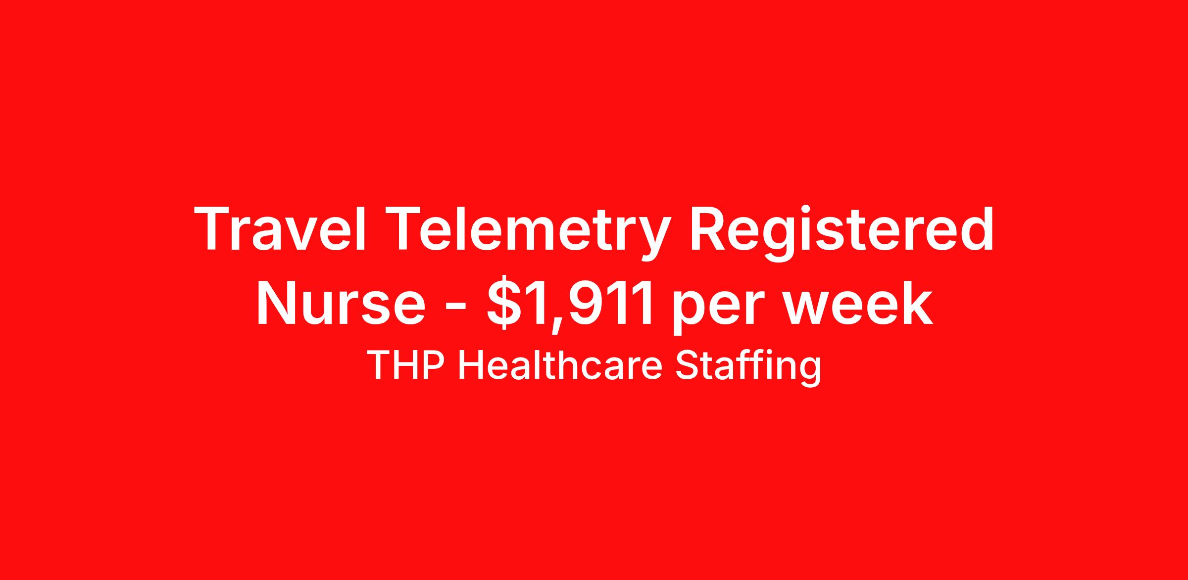 THP Healthcare Staffing is seeking a travel nurse RN Telemetry for a travel nursing job in Stockbridge, Georgia. Job Description & Requirements Specialty: Telemetry Discipline: RN Start Date: 04/13/2026 Duration: 14 weeks 36 hours per week Shift: 12 hours, nights Employment Type: Travel Our Client is currently seeking RN - Telemetry positions in Stockbridge, GA for a 3x12 Nights shift. You must have current State Licensure and at least 1 year of recent experience. Requirements Current Resume State Licensure Current BLS and/or ACLS and/or Specialty Certifications 2 Current Clinical References Physical (Within 12 Months) TB Skin Test (Within 12 Months) Titers - MMR/Hep B/Varicella Respiratory Fit Test (Within 12 Months) Current - Tdap/Flu Vaccinations Must be able to pass pre-employment, background and urine drug screening Compensation and Benefits Compettive Pay Packages Health Benefit Package Travel pay - 1st pay check Extending Contract Bonus Refer a friend and earn extra cash! At THP Healthcare Staffing, we take care of you - work with us, not for us! THP Healthcare Staffing Job ID 17843788. Pay package is based on 12 hour shifts and 36.0 hours per week (subject to confirmation) with tax-free stipend amount to be determined. Posted job title: RN:Telemetry,19:00:00-07:00:00 About THP Healthcare Staffing At THP Staffing, we specialize in connecting healthcare facilities with highly skilled travel nurses and allied health professionals who bring exceptional care and expertise wherever they go. Our mission is to ensure that every healthcare provider has access to top nursing talent, regardless of location, to deliver superior patient outcomes. Benefits Weekly pay Life insurance Pet insurance License and certification reimbursement Medical benefits Employee assistance programs Referral bonus Vision benefits Holiday Pay Health savings account