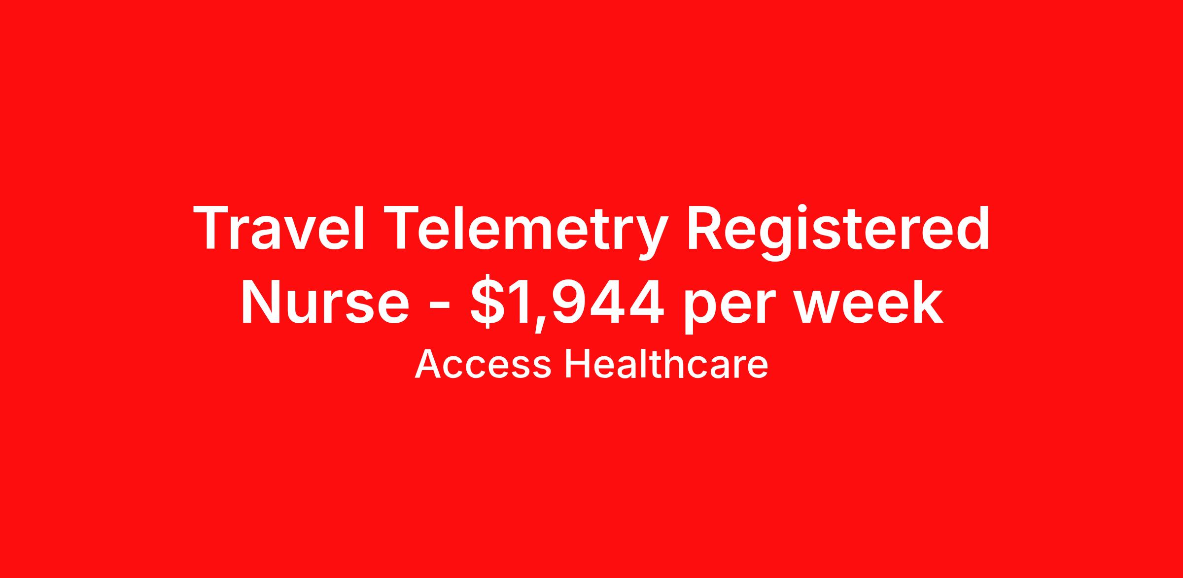 Access Healthcare is seeking a travel nurse RN Med Surg / Telemetry for a travel nursing job in Tucson, Arizona. Job Description & Requirements Specialty: Med Surg / Telemetry Discipline: RN Start Date: 03/30/2026 Duration: 13 weeks 36 hours per week Shift: 12 hours, nights Employment Type: Travel Access Healthcare Job ID 76442365. Pay package is based on 12 hour shifts and 36 hours per week (subject to confirmation) with tax-free stipend amount to be determined. About Access Healthcare Access Healthcare aims to provide superior service to our nursing family by providing around the clock support, competitive pay packages and an unmatched benefits package! Unlike other agencies, we offer a true family feel and work with you to find the placement that is right for you. We offer one of the top leading pay packages in the industry and we are ready to get you the money you deserve! Access Healthcare was founded by two travel nurses, Danielle and Diego, who had a dream and a shared vision of creating an agency which all nurses would want to work with. Our passion has led us to where we are today as one of the top 10 agencies in our home state of New Jersey, with access to contracts in all 50 states! We encourage you to join our team and we cannot wait to get to know you!