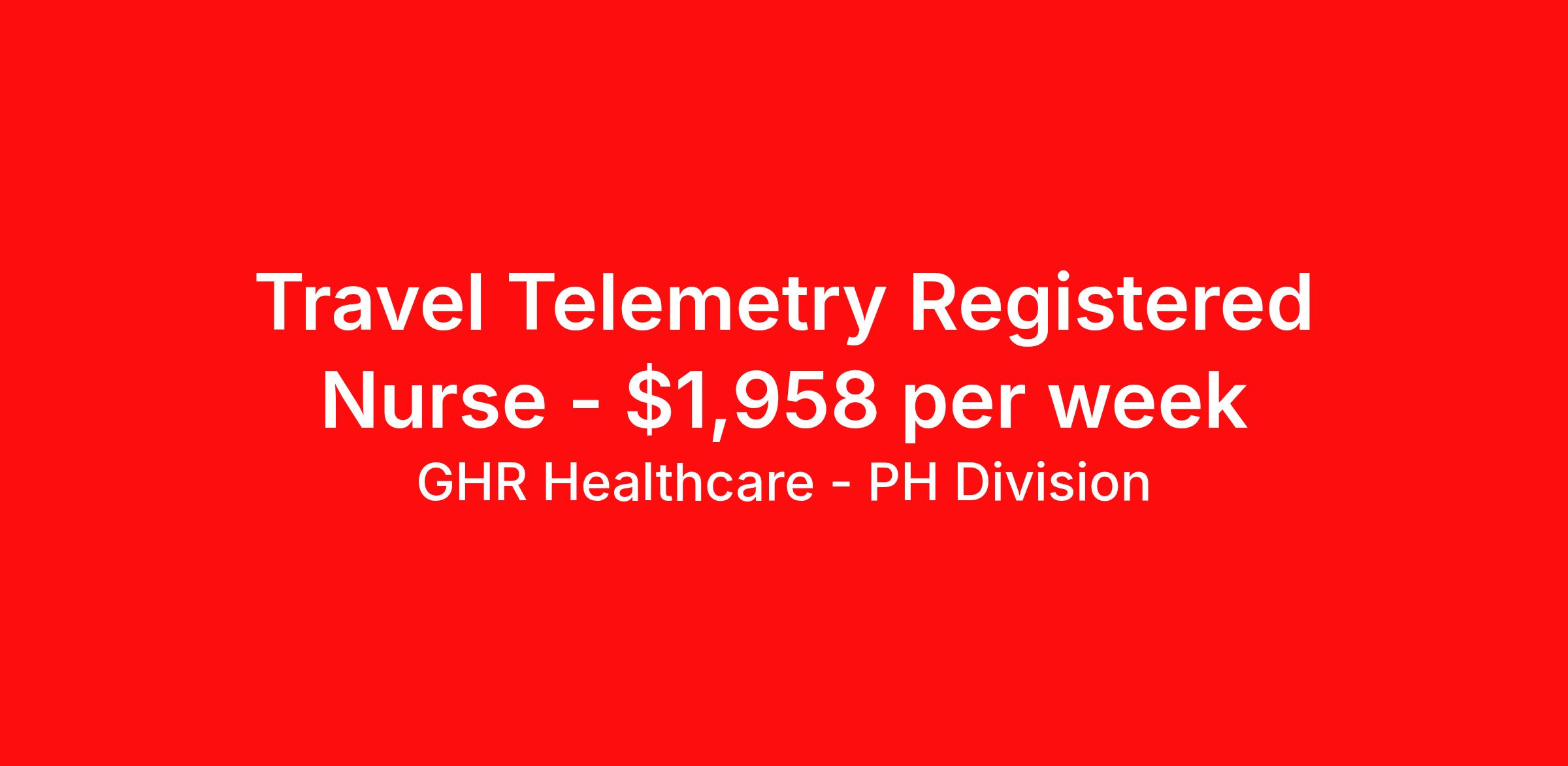 GHR Healthcare - PH Division is seeking a travel nurse RN Telemetry Med Surg for a travel nursing job in Lima, Ohio. Job Description & Requirements Specialty: Telemetry Discipline: RN Start Date: ASAP Duration: 13 weeks 36 hours per week Shift: 12 hours Employment Type: Travel Planet Healthcare Job ID 75832713. Pay package is based on 12 hour shifts and 36 hours per week (subject to confirmation) with tax-free stipend amount to be determined. About GHR Healthcare - PH Division For over 30 years, GHR Healthcare has been the bridge between healthcare professionals and the facilities that need them nationwide. We're committed to uncovering your ideal fit, supported by GHR's dedication to competitive compensation, transparent communication, and a devoted team that genuinely cares about your career journey. You can trust us to stand by your side as your advocate, confidante, and partner in advancing your career. At GHR, care and consideration are at the heart of everything we do. Visit ghrhealthcare.com to learn more.