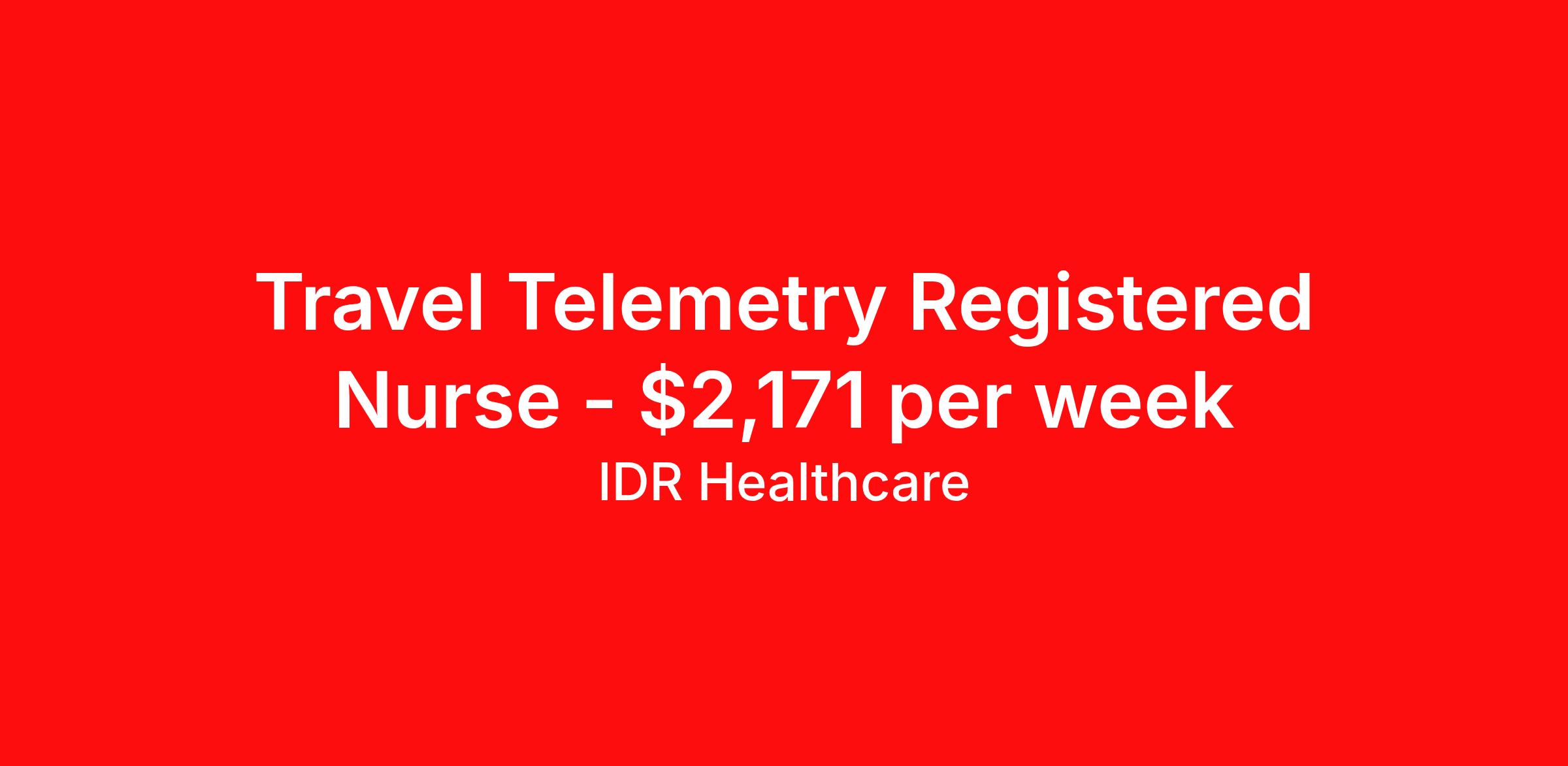 IDR Healthcare is seeking a travel nurse RN Telemetry for a travel nursing job in Cleveland, Ohio. Job Description & Requirements Specialty: Telemetry Discipline: RN Start Date: ASAP Duration: 13 weeks 36 hours per week Shift: 12 hours Employment Type: Travel IDR Healthcare is an awarding winning staffing firm that believes it is a privilege and awesome responsibility to serve those who selflessly care for others. Our mission is to empower healthcare professionals to achieve their fullest potential both personally and professionally while they create positive change within the healthcare community. We exercise true grit, tenacity, and authenticity while embracing and ownership mindset to go above and beyond providing healthcare professionals a world class experience. We are employee owned and our travelers and clinicians earn shares/equity by just completing multiple assignments! We have been named SIA’s Fastest Growing Staffing Firms and have won ClearlyRated® Best of Staffing for 11 consecutive years! This cements our commitment to clinician satisfaction earning top net promoter scores putting us in the top 2% of agencies in North America! TravelFarWithIDR and see what an extraordinary experience is all about! Benefits 2024 World Staffing Best Staffing Firms to Work For! ESOP (Equity) Healthcare Benefits for up to 30 days Between Assignments. Comprehensive Health Insurance Dental and Vision Insurance Sign-On, Completion, & Referral Bonus Programs License and Certification Reimbursement Weekly Pay and Competitive Compensation Large Network of Clients and Job Opportunities 401k retirement plan Exclusive Assignments IDR Job ID 427478. Pay package is based on 12 hour shifts and 36 hours per week (subject to confirmation) with tax-free stipend amount to be determined. About IDR Healthcare IDR Healthcare is an awarding winning staffing firm that believes it is a privilege and awesome responsibility to serve those who selflessly care for others. Our mission is to empower healthcare professionals to achieve their fullest potential both personally and professionally while they create positive change within the healthcare community. We exercise true grit, tenacity, and authenticity while embracing and ownership mindset to go above and beyond providing healthcare professionals a world class experience. We are employee owned and our travelers and clinicians earn shares/equity by just completing multiple assignments! We have been named SIA’s Fastest Growing Staffing Firms and have won ClearlyRated® Best of Staffing for 11 consecutive years! This cements our commitment to clinician satisfaction earning top net promoter scores putting us in the top 2% of agencies in North America! Help us give back! For every booked assignment, proceeds are donated to St. Jude and Feeding America! Last year we raised over $18,000 for St. Jude and provided over 49,000 meals for children in need. TravelFarWithIDR and see what it is all about! Benefits Weekly pay 401k retirement plan Referral bonus Medical benefits Dental benefits License and certification reimbursement Vision benefits