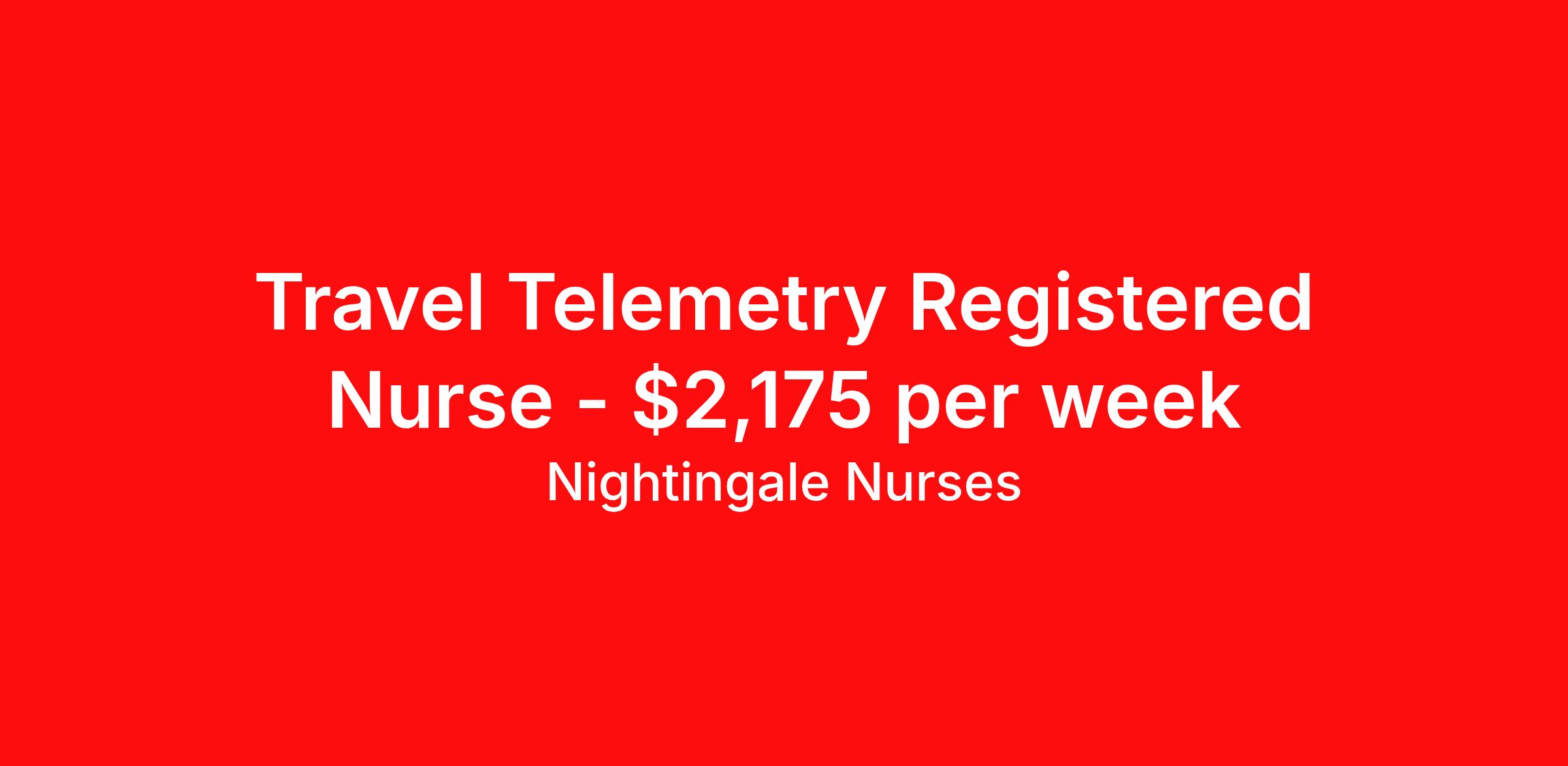 Nightingale Nurses is seeking a travel nurse RN Telemetry for a travel nursing job in Saint Louis, Missouri. Job Description & Requirements Specialty: Telemetry Discipline: RN Start Date: 04/06/2026 Duration: 13 weeks 36 hours per week Shift: 12 hours, days Employment Type: Travel About Nightingale Nurses the first name in travel nursing You may not realize it, but as an RN with real world hospital experience, you are legendary. To the lives you’ve helped save, the patients you’ve cared for, and to the hospitals where you’ve done it. And you’re just getting started. Legendary is where Nightingale begins. We’re the first name in travel nursing, representing only the very best RNs. That’s why hospitals prefer us, allowing us to offer exceptional travel nursing assignments all over the US, as well as the highest pay rates and most extensive benefits in the industry. Nightingale facilitates every aspect of your travel nursing assignment, so you can focus on doing what you do best. We want you to grow, explore, and enjoy unrivaled liberty, the freedom to nurse.