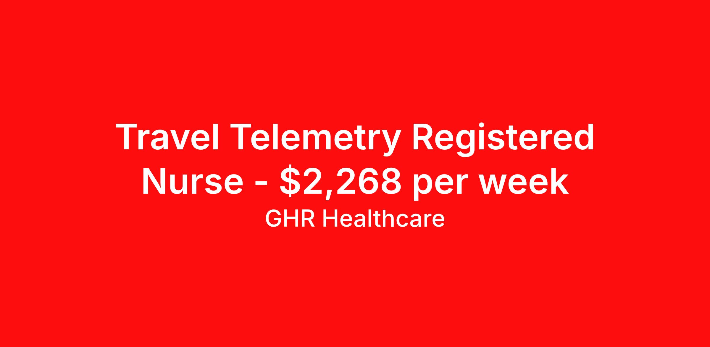 GHR Healthcare is seeking a travel nurse RN Telemetry for a travel nursing job in Petersburg, Virginia. Job Description & Requirements Specialty: Telemetry Discipline: RN Start Date: 04/06/2026 Duration: 12 weeks 36 hours per week Shift: 12 hours Employment Type: Travel GHR Healthcare Job ID 76337917. Pay package is based on 12 hour shifts and 36 hours per week (subject to confirmation) with tax-free stipend amount to be determined. About GHR Healthcare For over 30 years, GHR Healthcare has been the bridge between healthcare professionals and the facilities that need them nationwide. We're committed to uncovering your ideal fit, supported by GHR's dedication to competitive compensation, transparent communication, and a devoted team that genuinely cares about your career journey. You can trust us to stand by your side as your advocate, confidante, and partner in advancing your career. At GHR, care and consideration are at the heart of everything we do. Visit ghrhealthcare.com to learn more.