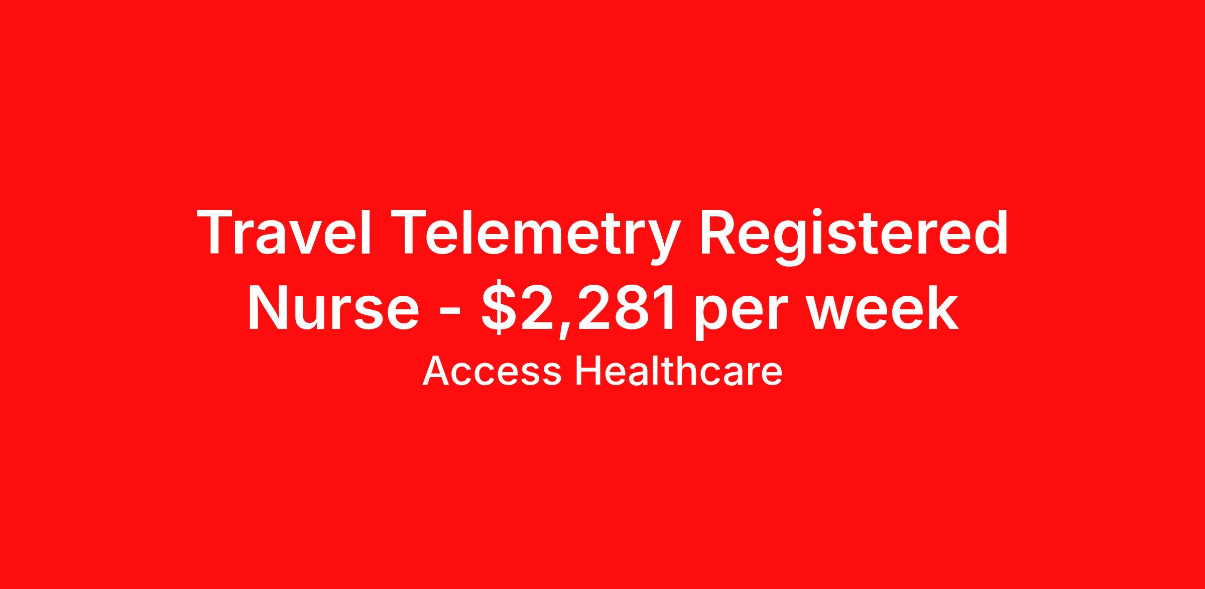 Access Healthcare is seeking a travel nurse RN Telemetry Level I for a travel nursing job in Alexandria, Louisiana. Job Description & Requirements Specialty: Telemetry Discipline: RN Start Date: 03/23/2026 Duration: 13 weeks 36 hours per week Shift: 12 hours, days Employment Type: Travel Access Healthcare Job ID 76159318. Pay package is based on 12 hour shifts and 36 hours per week (subject to confirmation) with tax-free stipend amount to be determined. About Access Healthcare Access Healthcare aims to provide superior service to our nursing family by providing around the clock support, competitive pay packages and an unmatched benefits package! Unlike other agencies, we offer a true family feel and work with you to find the placement that is right for you. We offer one of the top leading pay packages in the industry and we are ready to get you the money you deserve! Access Healthcare was founded by two travel nurses, Danielle and Diego, who had a dream and a shared vision of creating an agency which all nurses would want to work with. Our passion has led us to where we are today as one of the top 10 agencies in our home state of New Jersey, with access to contracts in all 50 states! We encourage you to join our team and we cannot wait to get to know you!