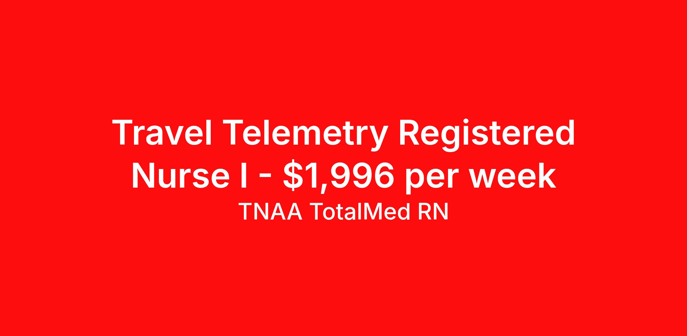 TNAA TotalMed RN is seeking a travel nurse RN Telemetry for a travel nursing job in Northampton, Massachusetts. Job Description & Requirements Specialty: Telemetry Discipline: RN Duration: 13 weeks 36 hours per week Shift: 12 hours, nights Employment Type: Travel We're looking for Telemetry RNs for an immediate travel nurse opening in Northampton, MA. The right RN should have 1-2 years' recent acute care experience. Read below for more requirements. As a TELE Travel Nurse, you will provide care by connecting patients to machines that measure heart rate, blood pressure, breathing rate, as well as blood-oxygen levels and electrocardiogram information. These machines then send data to computer screens for RNs to monitor. Telemetry RNs read and interpret the data to better determine patient care. As a TELE Travel Nurse, you should be prepared to perform the following tasks: Provide basic bedside care. Monitor and adjust specialized equipment used on patients, and interpret and record electronic displays. Identify irregular telemetry readings and notify appropriate medical team members. Initiate corrective action whenever information from monitoring equipment shows adverse symptomatology. TELE Travel Nurses should be able to stand and walk for long periods of time, as well as bend, lean and stoop without difficulty. RNs should be able to easily lift 20 pounds. Moving or lifting of patients may require lifting of up to 50 pounds at times. RNs must have specific vision abilities including close vision, distance vision, color vision, peripheral vision, depth perception and ability to adjust focus. Requirements*: ACLS, BLS, 2 Years * Additional certifications may be required before beginning an assignment. TotalMed Travel Job ID 1364874. Pay package is based on 12 hour shifts and 36 hours per week (subject to confirmation) with tax-free stipend amount to be determined. Posted job title: Telemetry - TELE RN - Travel Nurse About TNAA TotalMed RN TotalMed is a Top Ten, travel nursing and healthcare staffing agency with the mission of igniting purpose in healthcare. The organization staffs nurses, therapists, pharmacists, and other clinicians of all specialties in all 50 states. They offer local and travel jobs and match caregivers with the right organization to assist both facilities and patients. As an organization, they focus on putting highly-skilled staff into facilities to ensure adequate staffing for a better patient experience. TotalMed specializes in recruiting and placing healthcare professionals in travel, PRN, and permanent positions across the country in Nursing and Allied Health. Throughout 2020, the organization filled roles at even the most short-staffed facilities during the most challenging time in healthcare. By matching the right travel healthcare professional with the right organization, TotalMed continues to offer a lifeline to facilities and their patients. Benefits Weekly pay Guaranteed Hours Continuing Education 401k retirement plan Sick pay Wellness and fitness programs Referral bonus Employee assistance programs Medical benefits Dental benefits Vision benefits Benefits start day 1