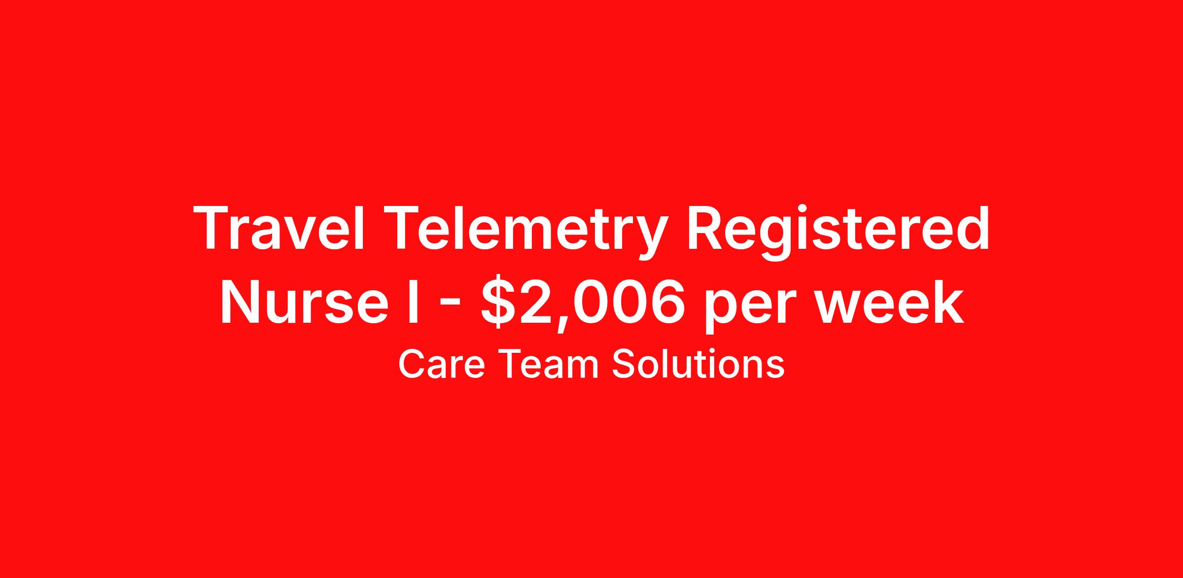 Care Team Solutions is seeking a travel nurse RN Telemetry for a travel nursing job in Northampton, Massachusetts. Job Description & Requirements Specialty: Telemetry Discipline: RN Start Date: 04/12/2026 Duration: 13 weeks 36 hours per week Shift: 12 hours Employment Type: Travel Registered Nurse must have 2 years of recent experience in particular specialty Details: Must Have 2 Years of recent Telemetry experience. Specialty: Telemetry Discipline: Registered Nurse Start Date: 2026-04-12 Duration: 13 Weeks Shift: 12 Hours Overnight shift. Hours Per Week: 36 Hours Employment Type: Contract Gross Weekly Pay: $2005.83 Six things that won’t happen if you apply to this job: You won’t have to guess what the downsides are. We’ll tell you up front. You won’t show up on day 1 and find out this is not what you signed up for. We won't leave your phone call ringing when it's inconvenient. Business hours for you are business hours for us. You won’t get shuffled to some customer service rep when a problem pops up. If we screw up something in securing your placement, we'll own it. That means it's on us to make it right. You won’t figure out your credentials alone. Our credentialing experts will walk you through it step by step. We've talked to thousands of travel nurses like you. We know you want good pay. You want to choose when you work. But the one thing nurse after nurse has said they want and don't have is someone in their corner. There's a lot in this business that’s messed up. We’re trying to be the people that fix it. You and every nurse with the guts to travel deserve it. We've worked hard for you to enjoy some one-of-a-kind benefits you'll not likely find anywhere else, because they benefit you more than they benefit us: Our early pay program Student loan reimbursement Free well-being tele-visits with a psychologist Care Team Solutions Job ID 579290. Pay package is based on 12 hour shifts and 36 hours per week (subject to confirmation) with tax-free stipend amount to be determined. Posted job title: Registered Nurse, Telemetry, Nights About Care Team Solutions Two brothers who give an enormous damn. We're Justin and Kyle. Neither of us are nurses. It doesn’t take a nurse to see that the way travel nurses are treated sucks. Nursing is already hard enough. Travel nursing takes serious guts. You get the toughest assignments in places you’ve never been. Which can be fun, but it’s also stressful. You’re in your element but outside of your hometown. You can be a stranger on the team. If anyone deserves someone in their corner, it’s you. But that’s not how most agencies operate. Which is why travel nurses hate working with them. We got into this business because we saw bucket-loads of nurses moving through the "churn and burn" travel machinery. We absolutely hate that. You'll do your best work when you have the placements you want and feel fully supported in your work. We pay our people well because we want them to treat you well. Our recruiters are amazing (we picked each of them ourselves), but if you've got a problem too big for them, they can come straight to us. We work like ten feet away. The "Churners and Burners" promise you the same benefits. They might as well copy/paste them from each other. We have them too: 401k, holiday pay, healthcare, dental, travel reimbursement, etc But we've worked hard for you to enjoy some one-of-a-kind benefits you'll not likely find anywhere else, because they benefit you more than they benefit us: Our early pay program Student loan reimbursement Free well-being tele-visits with a psychologist Benefits Weekly pay Holiday Pay Guaranteed Hours 401k retirement plan Wellness and fitness programs Referral bonus Medical benefits Dental benefits Vision benefits School loan reimbursement
