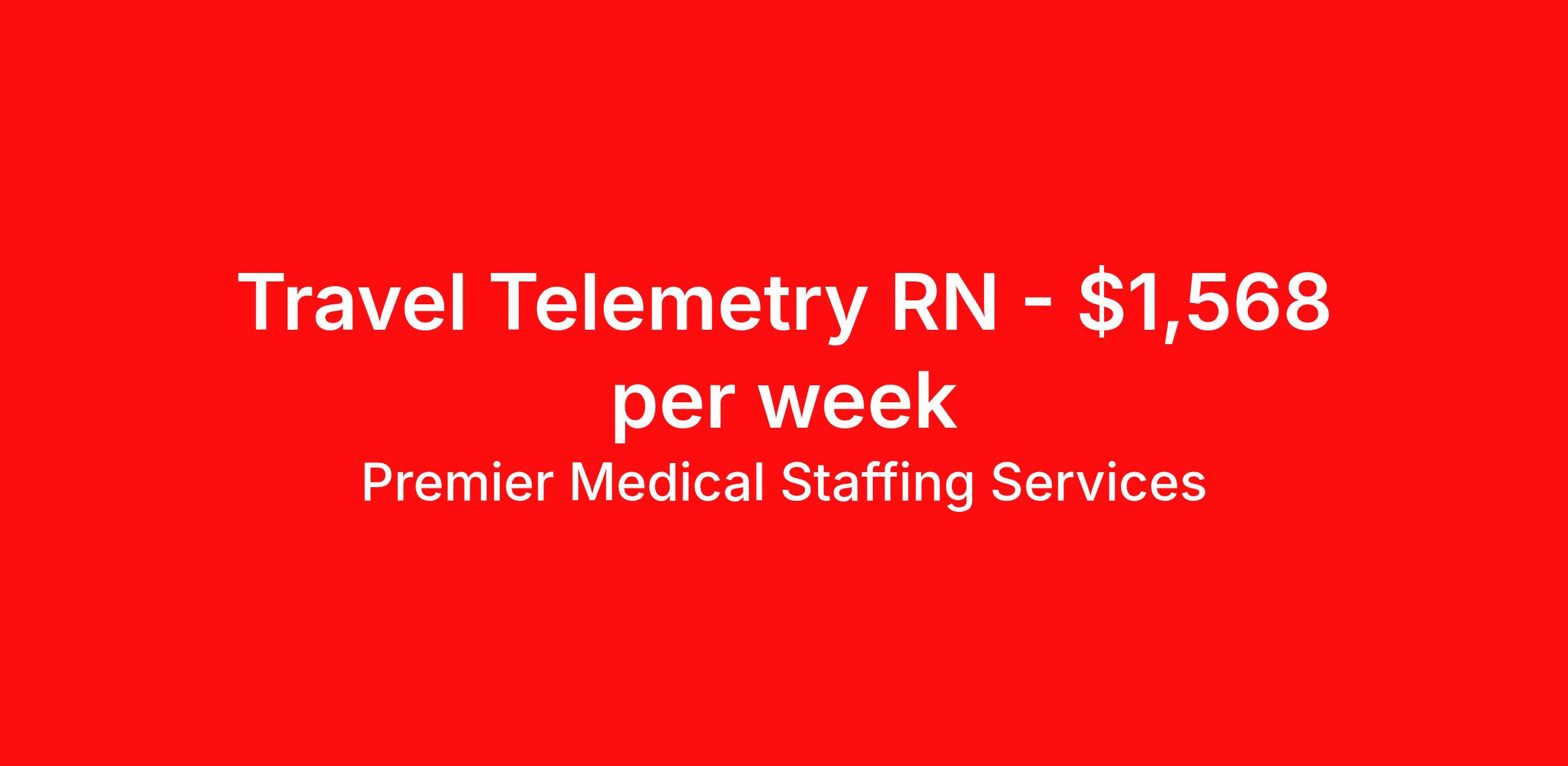 Premier Medical Staffing Services is seeking a travel nurse RN Med Surg / Telemetry for a travel nursing job in Waco, Texas. Job Description & Requirements Specialty: Med Surg / Telemetry Discipline: RN Start Date: 04/05/2026 Duration: 12 weeks 36 hours per week Shift: 12 hours Employment Type: Travel Premier Medical Staffing Job ID 621894. Pay package is based on 12 hour shifts and 36 hours per week (subject to confirmation) with tax-free stipend amount to be determined. Posted job title: RN Tele Med/Surg About Premier Medical Staffing Services Premier Medical Staffing Services, LLC is a nationally expanding healthcare staffing firm for healthcare professionals and companies. We understand our clients’ need for highly qualified, expertly trained medical professionals and are passionate about helping clinicians find employment opportunities that fit their personality and needs. Able to accommodate the ever-changing needs of the healthcare landscape, we offer per-diem, contract and direct hire placements to support the unique needs of each industry sector. Premier Medical Staffing Services is Joint Commission Certified, a Military Spouse Employment Partner and is certified as a Women’s Business Enterprise. We are proudly nurse owned.