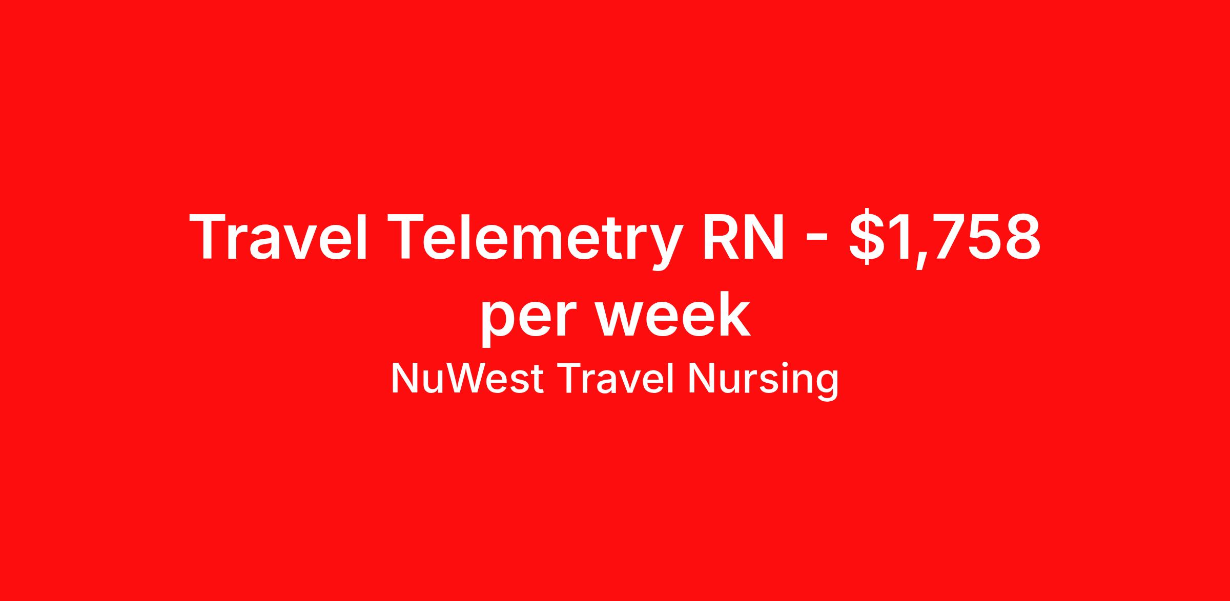 NuWest Travel Nursing is seeking a travel nurse RN Telemetry for a travel nursing job in Fort Wayne, Indiana. Job Description & Requirements Specialty: Telemetry Discipline: RN Duration: 13 weeks 36 hours per week Shift: 12 hours Employment Type: Travel We have a new assignment for RN - Telemetry in Fort Wayne, IN and are interviewing ASAP. This is a travel assignment, 3x12 Nights position at a great facility. Pay Range: $1615.8 - $1900.94 Per Week Benefits include medical, dental, vision, 401K, weekly direct deposit, and more! NuWest Travel Nursing Job ID 242887. Pay package is based on 12 hour shifts and 36 hours per week (subject to confirmation) with tax-free stipend amount to be determined.