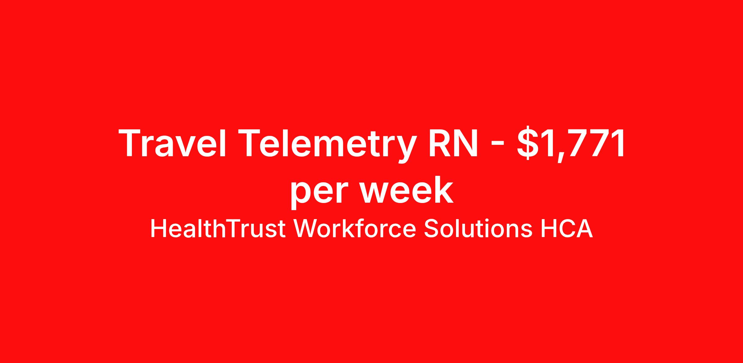 HealthTrust Workforce Solutions HCA is seeking a travel nurse RN Telemetry for a travel nursing job in Denver, Colorado. Job Description & Requirements Specialty: Telemetry Discipline: RN Start Date: 04/20/2026 Duration: 13 weeks 36 hours per week Shift: 12 hours, days Employment Type: Travel Entrust Your Career to HealthTrust! At HealthTrust, we believe that healthcare is not defined by the four walls in which it is practiced; it’s defined by its people. We pride ourselves on crafting opportunities that expand skill sets, broaden career horizons, provide economic stability, and cultivate personal growth. HealthTrust Offers: Competitive Pay Packages Guaranteed hours Weekly direct deposit options 401k with Company Match Earn up to $750 for referrals Free Private Furnished Housing or Tax-Free Subsidy To get started, you will need: RN's a minimum of 1 year in specialty Allied 6 months of experience An adventurous spirit and fierce dedication Degree in corresponding specialty as required Appropriate certifications and licensure as needed for the specific position HealthTrust Benefits: Opportunities for a lifetime: When you become a part of the HCA family, you will have exclusive access to more opportunities than any other healthcare system in the nation. At HWS, we help open the door to a lifetime of lasting career opportunities. A culture of care: Our clinicians have made HWS an industry leader for over 25 years. We are passionate about our mission that, above all else, we are committed to the care and improvement of human life. Career Development: As a wholly owned subsidiary of HCA Healthcare, HWS is a preferred partner to thousands of top-performing hospitals. We provide our healthcare professionals with first-priority access to more than 200,000 jobs nationwide. We are uniquely positioned to offer you exclusive and direct access to HCA Healthcare’s vast network of facilities. Let us open the door to nationwide opportunities that fit your lifestyle! We are an equal opportunity employer and value diversity at our company. We do not discriminate on the basis of race, religion, color, national origin, gender, sexual orientation, age, marital status, veteran status, or disability status. Job Requirements Certifications ACLS (Required) NIHSS (Required) BLS (Required) HealthTrust Workforce Solutions HCA Job ID 994114. Posted job title: Travel Nurse - Telemetry About HealthTrust Workforce Solutions HCA At HealthTrust Workforce Solutions, healthcare is not just about the four walls of a facility but about the people who provide and receive care. Our focus is on empowering healthcare professionals to deliver exceptional patient experiences by providing them with the necessary skills, tools, and support. We partner with healthcare facilities nationwide to ensure that the right professionals are in the right roles. We prioritize our clinicians by giving them a voice and access to opportunities to fulfill their mission of improving lives by providing quality patient care. We are committed to our core values of Trust, Innovation, Adaptability, Courage, and Accountability. We are dedicated to positively impacting the healthcare industry by providing first-priority access to more than 200,000 jobs nationwide to our healthcare professionals. Join us and be part of the HealthTrust family, where you can make a difference every day. We embrace our changing environment, and we maintain a culture that has a rich tradition of transforming itself to meet the challenges of the future. MISSION STATEMENT While putting great people in the right roles is essential, our mission is far greater. We want our clinicians to be part of the HealthTrust family, where healthcare professionals have a voice and are empowered with the right tools and opportunities to fulfill their personal mission of improving lives. Plus, as a preferred partner to thousands of top-performing hospitals, we provide our healthcare professionals with first-priority access to more than 200,000 jobs nationwide. Benefits Dental benefits Vision benefits Referral bonus Continuing Education Life insurance
