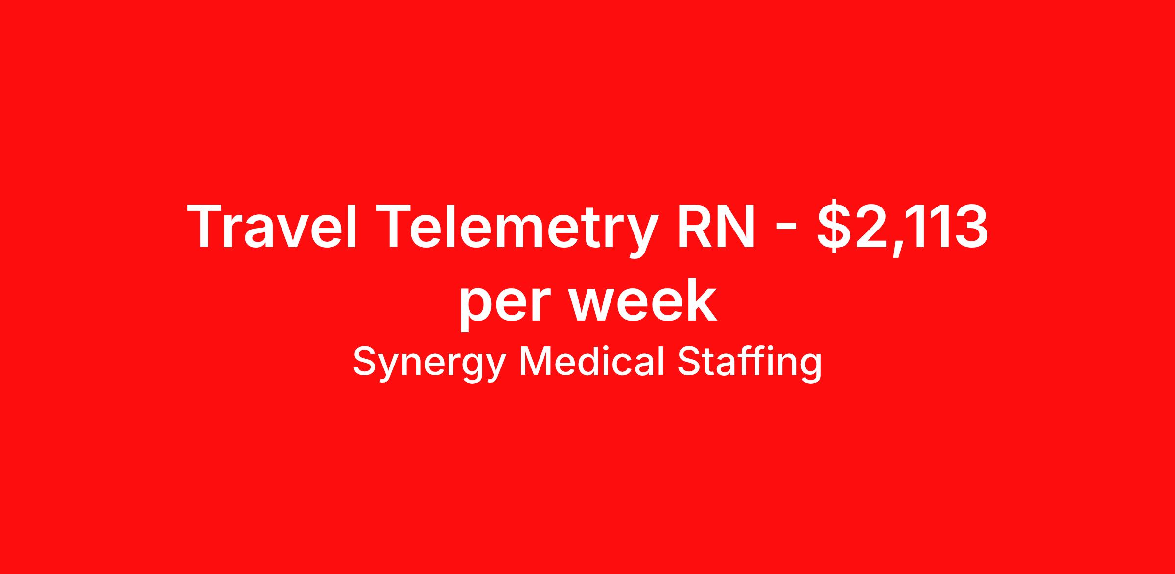 Synergy Medical Staffing is seeking a travel nurse RN Telemetry for a travel nursing job in Salem, Massachusetts. Job Description & Requirements Specialty: Telemetry Discipline: RN Start Date: 05/17/2026 Duration: 13 weeks 36 hours per week Shift: 12 hours, nights Employment Type: Travel Travel, RN - Tele Location: Salem, Massachusetts Shift: 3X12 Nights, 19:00:00-07:00:00, 12.00-3 Duration 13 Weeks When you join Synergy Medical Staffing, you’ll have a dedicated recruiter helping you at all times. Your recruiter is a cross between a career coach and a concierge. They will help you fine-tune your resume, find your next job, and locate an apartment (even one that takes pets!). Make one call and get help with everything from placement to housing to payroll, even travel directions! As a travel, contract and permanent placement medical staffing company with over 20 years of experience in the industry, we understand your needs. Synergy’s Benefits are best in class and include the following: 401K that matches up to 5% of your pay and you are 100% vested from Day 1. Medical, Dental, Vision, Life insurance, Long and short-term disability and others Loyality Program Weekly pay Holiday Pay (varies by Assignment) Guaranteed Hours (varies by Assignment) Referral bonus Continuing Education License and certification reimbursement Synergy Medical Staffing Job ID 36155738. Pay package is based on 12 hour shifts and 36.0 hours per week (subject to confirmation) with tax-free stipend amount to be determined. Posted job title: RN:Tele,19:00:00-07:00:00 About Synergy Medical Staffing When you join Synergy Medical Staffing, you’ll have a dedicated recruiter helping you at all times. Your recruiter is a cross between a career coach and a concierge. They will help you fine-tune your resume, find your next job, and locate an apartment (even one that takes pets!). Make one call and get help with everything from placement to housing to payroll, even travel directions! As a travel, contract and permanent placement medical staffing company with over 12 years of experience in the industry, we understand your needs. Are you interested in traveling, or just a job around the corner? Whatever your preference, you can be sure there are plenty of Nursing Jobs, Allied Jobs and Physical Therapy Jobs, Occupational Therapy Jobs, Speech Therapy Jobs and Rehab Therapy jobs anywhere you want to go. Synergy Medical Staffing professionals have been in the Medical staffing employment and staffing industry for over 12 years, and have developed solid relationships with numerous healthcare facilities nationwide. Contact us now and expand your medical career with new opportunities from Synergy Medical Staffing. Synergy’s Benefits are best in class and include the following 401K Day 1 Full Medical, Dental, Vision, Life insurance, Long and short term disability and others Student Loan Repayment and CEU reimbursement Loyalty bonus after 600 hours Benefits Discount program Weekly pay Holiday Pay Guaranteed Hours Referral bonus Medical benefits Dental benefits Continuing Education License and certification reimbursement Life insurance 401k retirement plan Cancelation protection Vision benefits