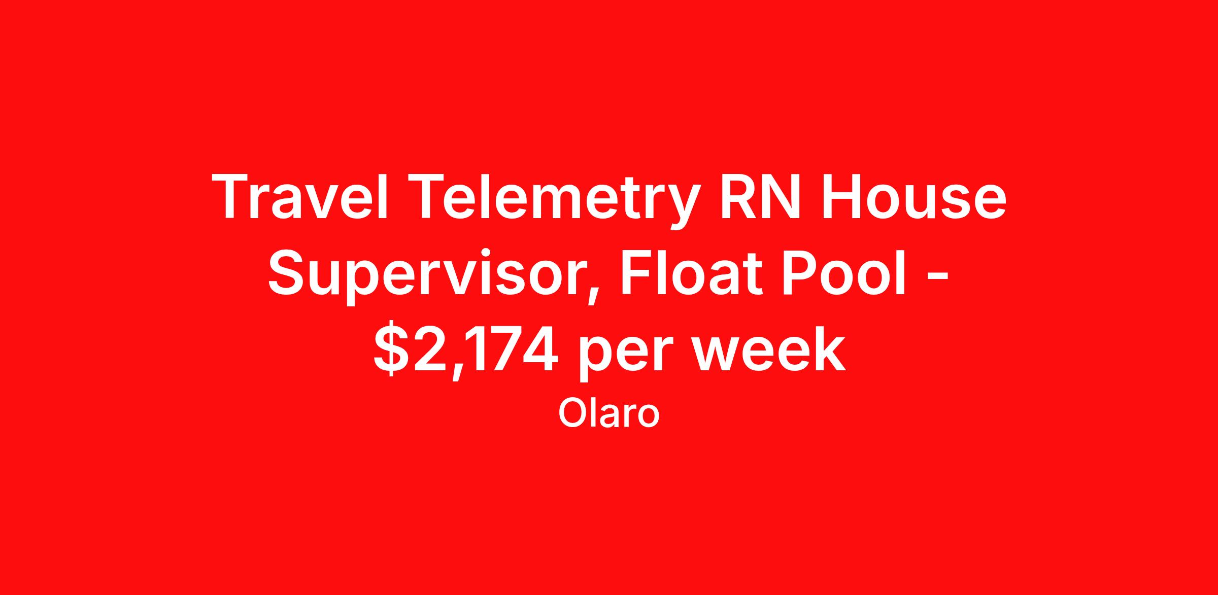 Travel Telemetry RN House Supervisor, Float Pool - $2,174 per week