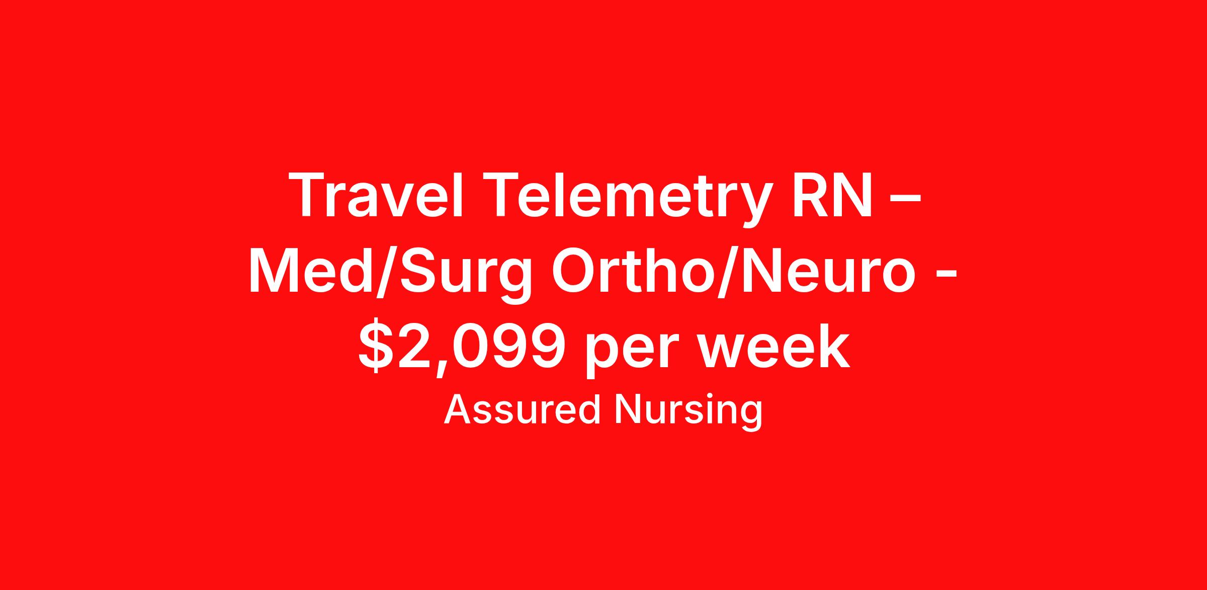 Travel Telemetry RN – Med/Surg Ortho/Neuro - $2,099 per week