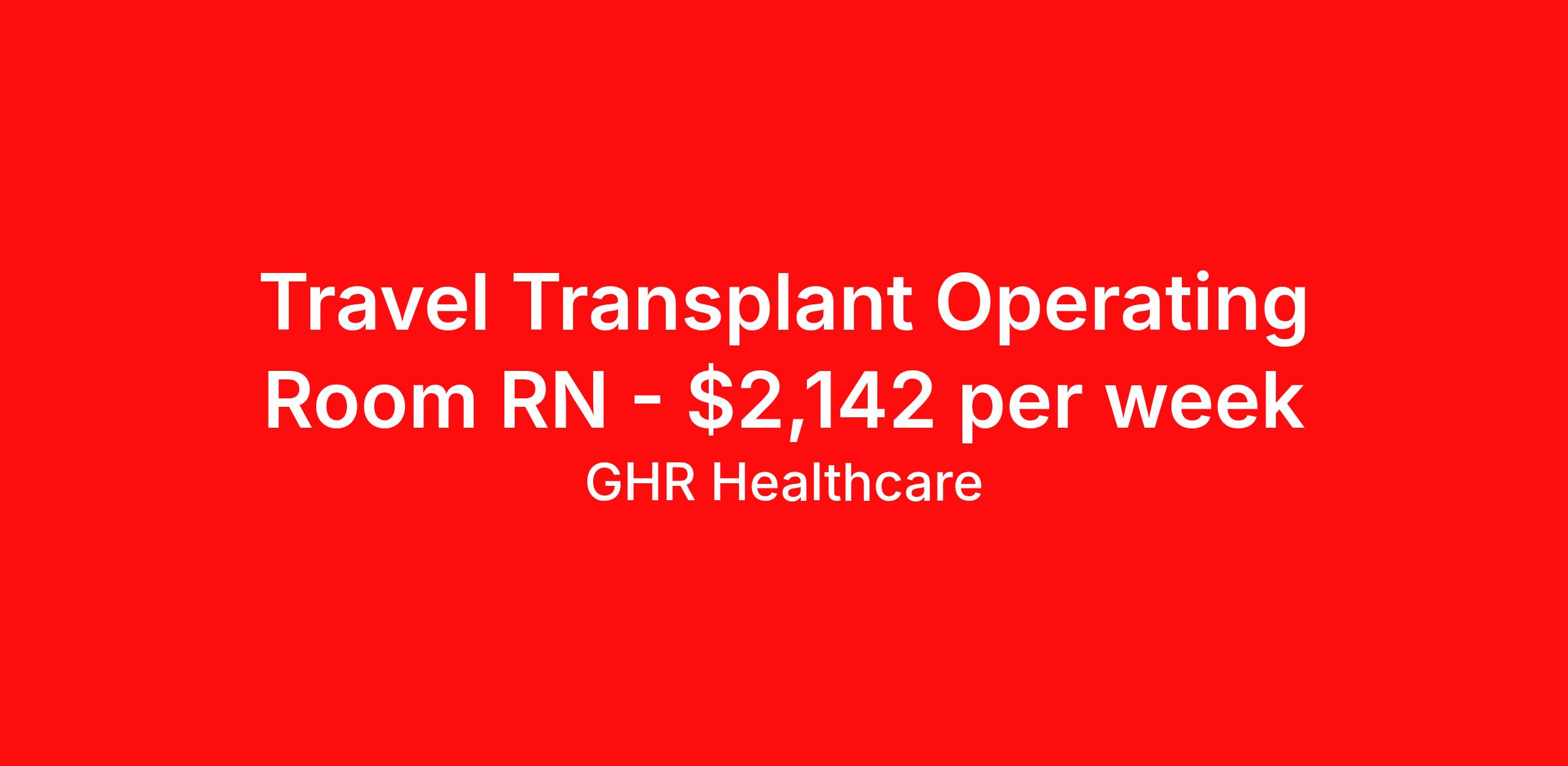 GHR Healthcare is seeking a travel nurse RN OR - Operating Room for a travel nursing job in Weston, Florida. Job Description & Requirements Specialty: OR - Operating Room Discipline: RN Start Date: 04/20/2026 Duration: 13 weeks 36 hours per week Shift: 12 hours Employment Type: Travel GHR Healthcare Job ID 75562522. Pay package is based on 12 hour shifts and 36 hours per week (subject to confirmation) with tax-free stipend amount to be determined. About GHR Healthcare For over 30 years, GHR Healthcare has been the bridge between healthcare professionals and the facilities that need them nationwide. We're committed to uncovering your ideal fit, supported by GHR's dedication to competitive compensation, transparent communication, and a devoted team that genuinely cares about your career journey. You can trust us to stand by your side as your advocate, confidante, and partner in advancing your career. At GHR, care and consideration are at the heart of everything we do. Visit ghrhealthcare.com to learn more.