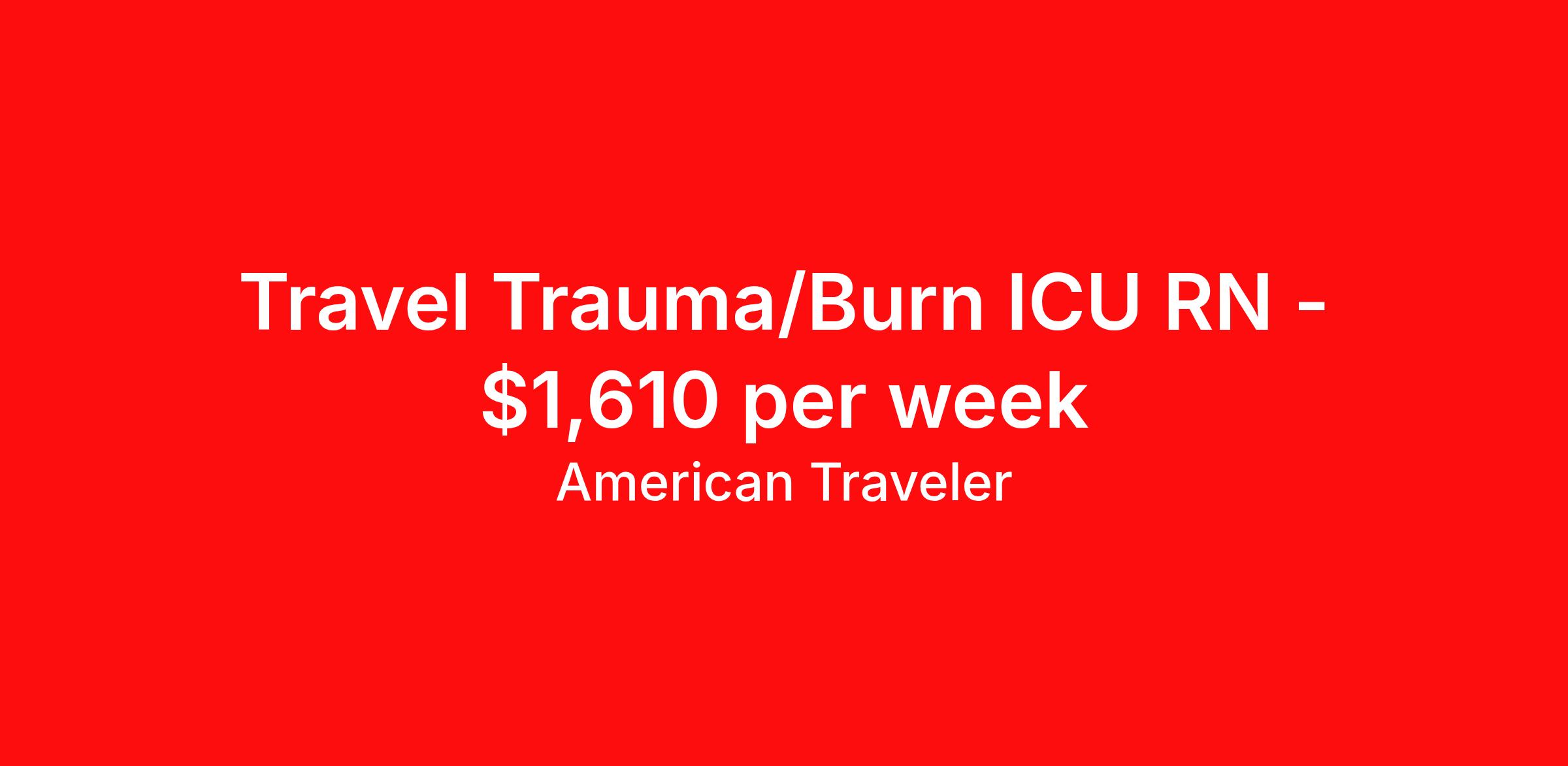 American Traveler is seeking a travel nurse RN ICU - Intensive Care Unit for a travel nursing job in Plano, Texas. Job Description & Requirements Specialty: ICU - Intensive Care Unit Discipline: RN Start Date: ASAP Duration: 13 weeks 36 hours per week Shift: 12 hours, nights Employment Type: Travel Assignment Overview Shift: Nights, 3x12hrs Hours: 36 hrs/wk Start Date: Oct 13, 2025 Length: 13 weeks Openings: 2 Description American Traveler is seeking an experienced RN for a Burn Trauma ICU night shift position requiring a TX or compact RN license. Details Work in the Burn Trauma ICU (BTICU) in a hospital setting Night shift schedule from 7:00 PM to 7:00 AM Care for patients with burn and trauma-related conditions Requirements Active TX or compact RN license required Minimum of 1 year recent RN experience in ICU or burn trauma setting No gaps in work history equal to 90 days or more within the past 12 months AHA or ARC certifications accepted; must not expire within the first 30 days of the assignment Additional Information US Social Security Number and date of birth required for consideration Applicants with Canadian SSN are not eligible Provide specialized care for critical burn and trauma patients Night shift role may include weekend or holiday coverage as scheduled American Traveler Job ID P-614620. Pay package is based on 12 hour shifts and 36 hours per week (subject to confirmation) with tax-free stipend amount to be determined. Posted job title: Travel RN - ICU About American Traveler With over 25 years of experience, American Traveler has established a reputation for outstanding customer service. Our team ensures a smooth, worry-free experience for those starting on or expanding their travel nursing and allied careers. With thousands of travel nursing and allied jobs nationwide, our attentive and approachable recruiters find positions that align perfectly with your career aspirations and personal requirements. American Traveler offers exceptional benefits, including premium medical, dental, vision and life insurance beginning day one of your assignment, generous 401(k) match, substantial housing stipends, and more. Additionally, with 24/7 support and access to our in-house clinicians, you are assured confidence and comfort throughout your assignment. With our team behind you, you can relax and enjoy a rewarding travel career.