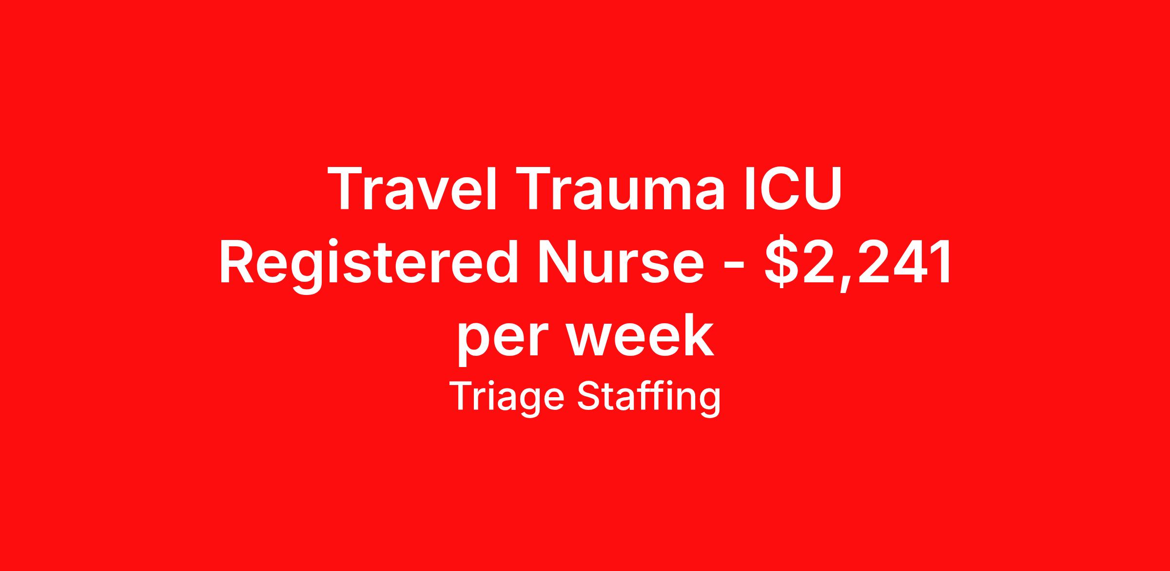 Triage Staffing is seeking a travel nurse RN ICU - Intensive Care Unit for a travel nursing job in Omaha, Nebraska. Job Description & Requirements Specialty: ICU - Intensive Care Unit Discipline: RN Start Date: 04/13/2026 Duration: 13 weeks 36 hours per week Shift: 12 hours, nights Employment Type: Travel Travel Nursing: Intensive Care Unit Omaha, NE Location: Omaha, NE Start Date: 4/13/2026 Shift Details: 12H Nights 36 hours per week Length: 13 WEEKS Apply for specific facility details.ICU RN Triage Staffing Job ID WQYTEYAM. Posted job title: Nursing: Intensive Care Unit About Triage Staffing At Triage, we prefer to be real . Real about expectations—both ours and yours. Real about how a decision you make today could affect your tomorrows. Real about how compensation actually works. Real about how great—or grating—your next supervisor may be. Being real allows everyone at Triage to be ready . Ready to serve you with real honesty. So if that gig near the ocean is really no day at the beach, or that third shift comes with a second-class rate, we tell you. So you can be ready, too. We staff all five major divisions of acute care—nursing, lab, radiology, cardiopulmonary and rehab therapy, offering: - Competitive, custom pay packages - One point of contact for both travelers and facilities (per division) - A reliable recruiter who's got your back throughout your entire assignment - In-house compliance and accounting specialists - A clinical liaison team available 24/7 to offer medical and professional support and career development - A mentoring program that is run and managed by actual clinicians—yeah, you read that right - And more (because of course there’s more) Are we the biggest? No. Are we the best? That’s rather subjective, but we’re trying to be. Will we work like hell to get you as close to your idea of heaven as possible? Yes. Yes, we will. Benefits: Day One comprehensive, nationwide insurance plans for health, vision and dental and life—including a HSA option Day One 401(k) program with employer-matching contributions once eligible Facility cancelling protection—your time is money on and off-the-clock Guaranteed hours Weekly paychecks via direct deposit Earned vacation bonuses for time worked Paid holidays Employee assistance program (EAP)—your mental health is important, too Continuing education, certification and licensing reimbursement Workers comp—because accidents happen Top-rated professional liability insurance Company provided housing options Referral bonus—$750 in your pocket after they’ve completed a 13-week assignment