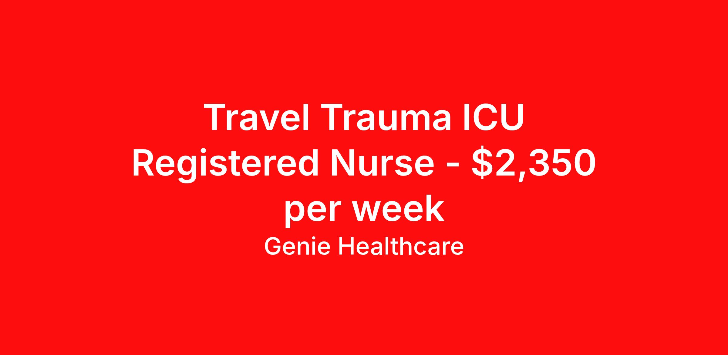 Genie Healthcare is seeking a travel nurse RN ICU - Intensive Care Unit for a travel nursing job in Omaha, Nebraska. Job Description & Requirements Specialty: ICU - Intensive Care Unit Discipline: RN Start Date: 04/13/2026 Duration: 13 weeks 36 hours per week Shift: 12 hours, nights Employment Type: Travel Genie Healthcare is looking for a RN to work in Intensive Care Unit (ICU) for a 13 weeks travel assignment located in Omaha, NE for the Shift (3x12 nights, 19:00:00-07:00:00, 12.00-3). Pay and benefits packages are estimated based on client bill rate at time the job was posted. These rates are subject to change. Exact pay and benefits vary based on several things, including, but not limited to, guaranteed hours, client changes in bill rate, experience, etc. Benefits: Medical Insurance, Dental Insurance, Vision Insurance, 401(k) with company matching (50% up to 6% of what you contribute) Genie Healthcare Job ID 17973359. Pay package is based on 12 hour shifts and 36.0 hours per week (subject to confirmation) with tax-free stipend amount to be determined. Posted job title: RN:Intensive Care Unit (ICU),19:00:00-07:00:00 About Genie Healthcare Genie Healthcare is one of the fastest growing Nurse Travel Agencies in the USA. Genie serves hundreds of facilities and has over 4000 current travel RN contracts open at any given time. Genie provides travel RN’s flexibility, support, top pay scale, housing and the 1 rated, multi-state health insurance coverage. Genie Healthcare carries with it a commitment to providing a comprehensive level of service and quality care. Growing from a small team of eager recruiters to a company with satisfied clients in nearly every corner of the nation, delivering excellence in patient and customer care is the key to Genie’s success. The management team has 20 years of experience in workforce solutions and staffing in medical and non-medical fields, roles ranging from Clerical job to Cardiologist to software developer to CEO.