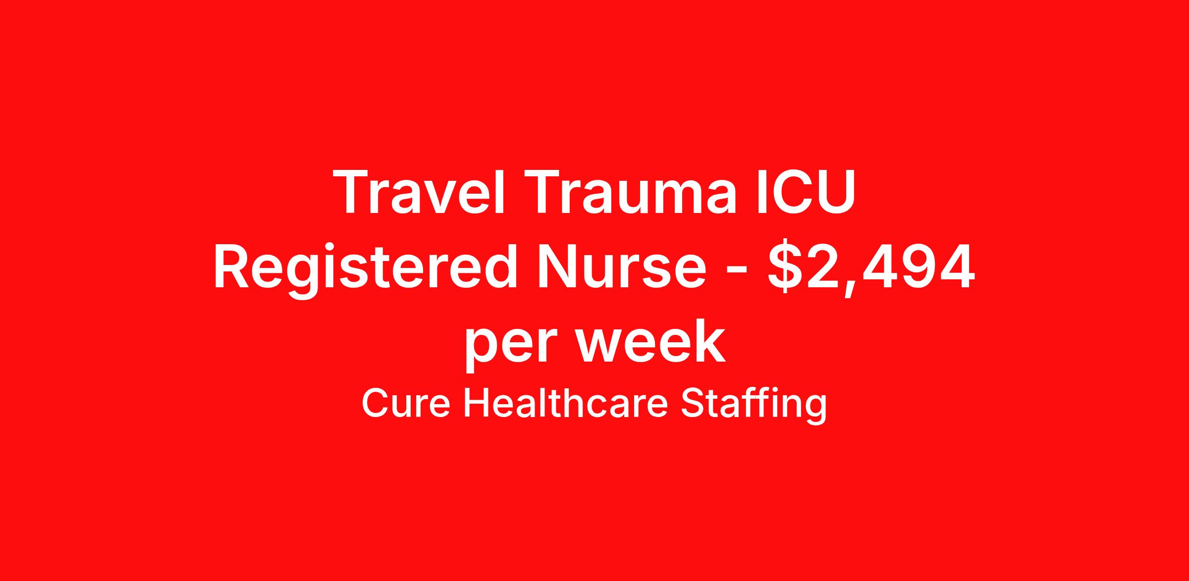 Cure Healthcare Staffing is seeking a travel nurse RN ICU - Intensive Care Unit for a travel nursing job in Omaha, Nebraska. Job Description & Requirements Specialty: ICU - Intensive Care Unit Discipline: RN Start Date: 04/13/2026 Duration: 13 weeks 36 hours per week Shift: 12 hours, nights Employment Type: Travel Cure Healthcare is seeking a RN - ICU - Intensive Care Unit for positions in Omaha, Nebraska. Current Nebraska license and AHA BLS and ACLS required and additional certifications related to this specialty. To qualify for this travel assignment, the candidate's primary residence must be located at least 50 miles from the facility address. This shift is 3x12 Nights. Required: 2 years of recent experience in ICU - Intensive Care Unit. Please inquire for specific job details and confirm shift required by facility. Cure Healthcare Staffing Job ID 36169165. Pay package is based on 12 hour shifts and 36.0 hours per week (subject to confirmation) with tax-free stipend amount to be determined. Posted job title: RN:ICU - Intensive Care Unit,18:00:00-06:00:00 About Cure Healthcare Staffing Phone Number: Main: 512-572-6388 Website: https://curehealthcarestaffing.com/ With 20 years of healthcare staffing experience, Cure is helping nurses and allied health professionals rediscover their love of patient care while providing healthcare facilities with the flexible staffing solutions they need. We talk to nurses and techs every day who feel overwhelmed. By empowering them with flexibility and ownership of their career, we can keep more qualified healthcare professionals in direct patient care. Patient care should always come first. That’s why we went through the process to become accredited by the Joint Commission. We only accept staff that meet the Joint Commission quality criteria so we can ensure that short-term staff assignments contribute to quality care rather than detract from it.