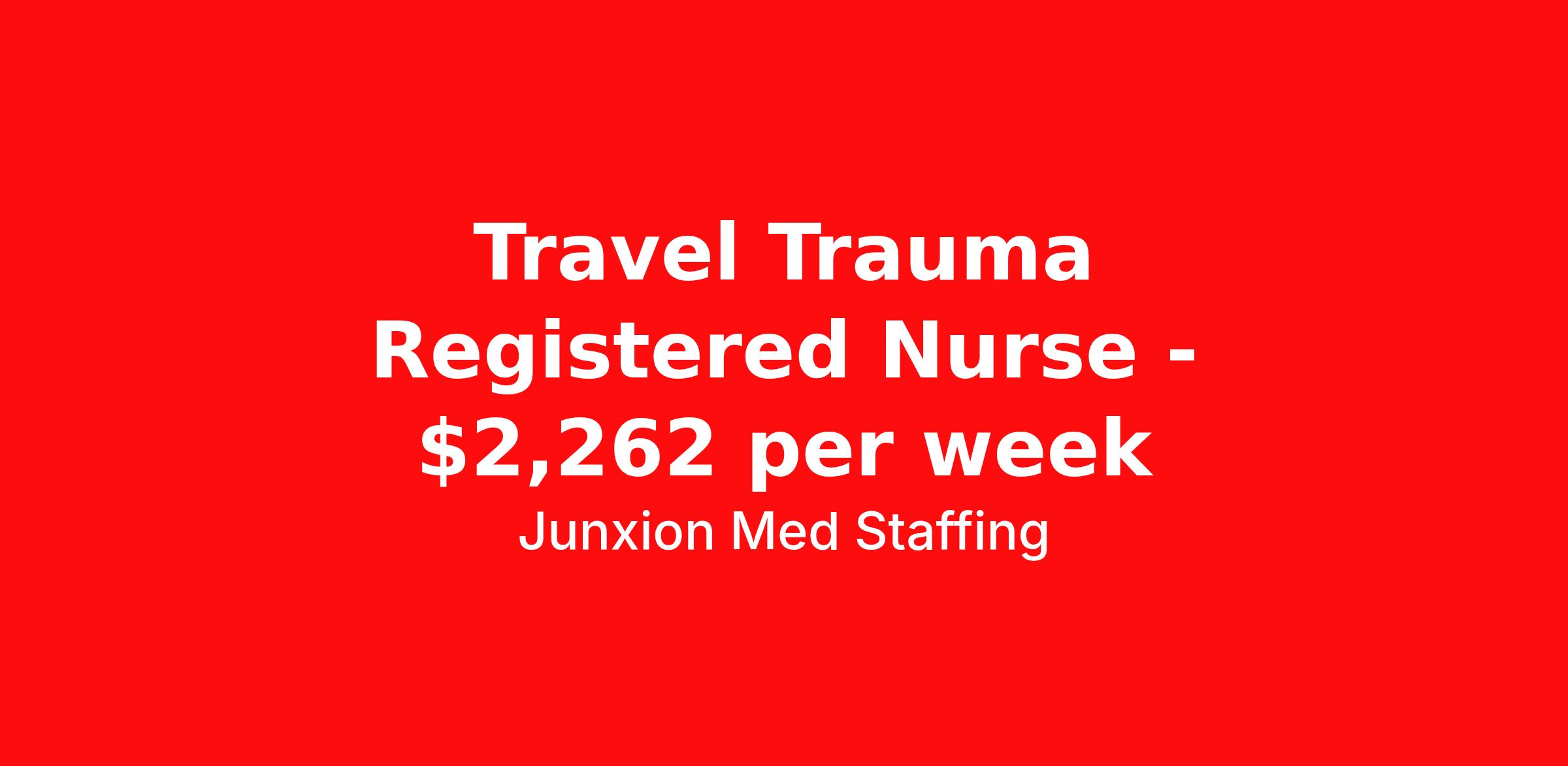 Junxion Med Staffing is seeking a travel nurse RN Trauma for a travel nursing job in Milwaukee, Wisconsin. Job Description & Requirements Specialty: Trauma Discipline: RN Start Date: 04/06/2026 Duration: 14 weeks 36 hours per week Shift: 12 hours, rotating Employment Type: Travel Summary: Junxion Med Staffing is looking for a Trauma RN to take an assignment in Milwaukee, Wisconsin. This assignment lasts 13.57 WEEKS and is scheduled to start on April 6, 2026. If you don't like the start date, pay, or shift, then let’s talk. Give us a call opt 1 Job Details: Shift: 12 H Rotating Total Weekly Hours: 36 Certifications: BLS, Wisconsin Registered Nurse License or Multi-state Nursing License, AHA Basic Life Support for Healthcare Provider (BLS), AHA Advanced Cardiac Life Support (ACLS), Trauma Nurse Course Certification (TNCC), AHA Pediatric Advanced Life Support (PALS) Trauma Level: Benefits: Day 1 Insurance Additional bonus potential for every contract Additional vacation incentives Medical insurance with no more than $175 monthly premium for employee Employee Assistance Program (EAP) Referral bonus up to $1,000 401K and access to financial advisors for financial wellness and education A dedicated recruiter and support team that will help you every step of the way to sure you start on time and have an exceptional experience An agency ran by a traveler for travelers Click here for licensing requirements About the Company: Junxion Med Staffing is an award-winning healthcare staffing company with a mission to provide quality healthcare to our communities. Apply today to speak with a recruiter! Awards: RNVIP- Top 10 Travel Nursing Agencies of 2024 BluePipes – The Best Travel Nursing Companies 2023 *Estimated weekly pay includes projected hourly wages and weekly meal and lodging per diems for eligible clinicians based on nationally published GSA rates. Actual weekly pay and per diems may differ from the amount shown and may be subject to change during an assignment. For all employees and employee applicants, Junxion Med Staffing is an Equal Employment Opportunity ("EEO") Employer, including Disability/Vets, and welcomes all to apply. Junxion Med Staffing Job ID 1362053. Pay package is based on 12 hour shifts and 36 hours per week (subject to confirmation) with tax-free stipend amount to be determined. About Junxion Med Staffing Junxion Med Staffing was founded by a former healthcare traveler who understands the challenges healthcare professionals face - because we’ve been there. We specialize in placing travel nurses, allied health professionals, physicians, physician assistants, and nurse practitioners in both short-term and permanent roles across a wide range of specialties. Whether you're looking for a travel contract or a long-term fit, we work to ensure the right match between each healthcare professional and facility. At Junxion, we keep it simple: ● Transparent communication. No surprises, no hidden details, just honest conversations so you always know what to expect. ● Dedicated support. From job search to contract negotiations and throughout your assignment, you’ll have a recruiter who’s with you every step of the way. ● Competitive pay and benefits. We advocate for you to be fairly compensated and supported in your goals. ● A focus on your success. When healthcare professionals feel valued and empowered, patient care improves and that’s what it’s all about. You’re not just a number here. You’re part of a team that actually cares. Let’s find your next great opportunity together. Benefits Weekly pay Referral bonus Dental benefits Vision benefits 401k retirement plan Medical benefits Mileage reimbursement
