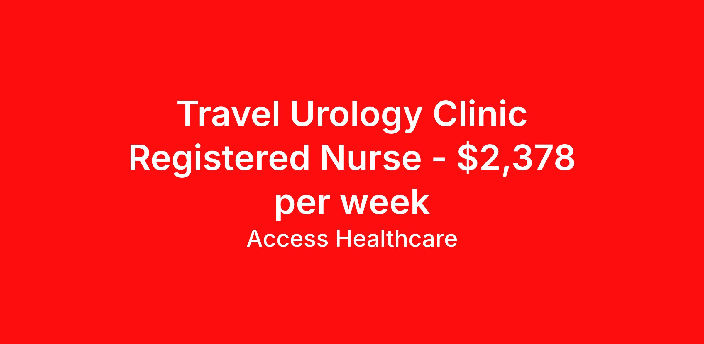 Access Healthcare is seeking a travel nurse RN Clinic Urology for a travel nursing job in Medford, Oregon. Job Description & Requirements Specialty: Urology Discipline: RN Start Date: 05/11/2026 Duration: 13 weeks 40 hours per week Shift: 8 hours, days Employment Type: Travel Access Healthcare Job ID 77027202. Pay package is based on 8 hour shifts and 40 hours per week (subject to confirmation) with tax-free stipend amount to be determined. About Access Healthcare Access Healthcare aims to provide superior service to our nursing family by providing around the clock support, competitive pay packages and an unmatched benefits package! Unlike other agencies, we offer a true family feel and work with you to find the placement that is right for you. We offer one of the top leading pay packages in the industry and we are ready to get you the money you deserve! Access Healthcare was founded by two travel nurses, Danielle and Diego, who had a dream and a shared vision of creating an agency which all nurses would want to work with. Our passion has led us to where we are today as one of the top 10 agencies in our home state of New Jersey, with access to contracts in all 50 states! We encourage you to join our team and we cannot wait to get to know you!