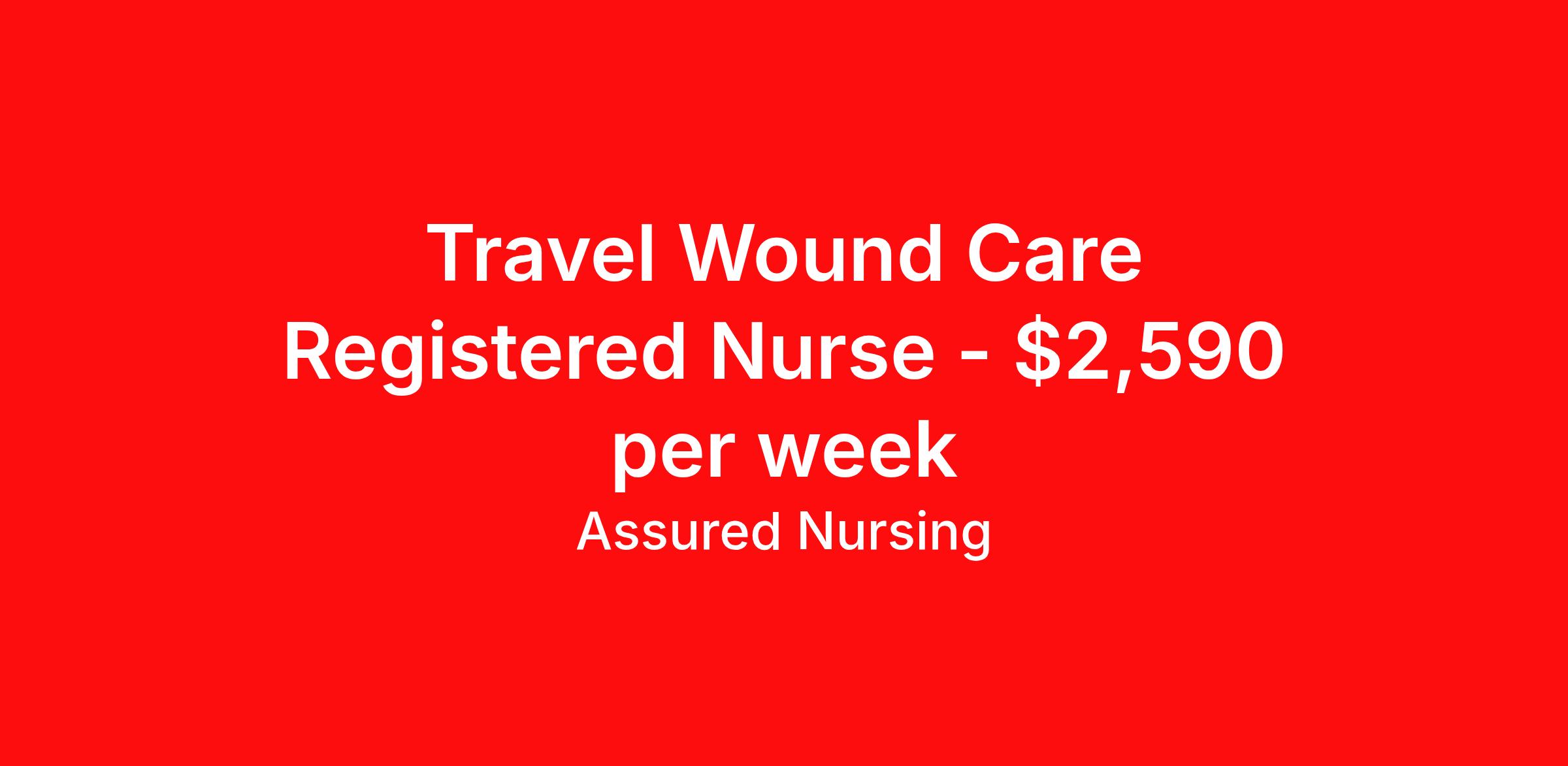 Assured Nursing is seeking a travel nurse RN Wound Care for a travel nursing job in San Francisco, California. Job Description & Requirements Specialty: Wound Care Discipline: RN Start Date: 04/20/2026 Duration: 13 weeks 40 hours per week Shift: 8 hours, days Employment Type: Travel Assured Nursing is currently seeking a RN for a contract position in San Francisco California . This is a 7a-3p, 07:00:00-15:00:00, 8.00-5 position in the Wound Care RN, 274-158740 . The ideal candidate will possess a current state license as a RN and have at least 2 years of recent experience as a Wound Care RN . Assured Nursing Job ID 36033635. Pay package is based on 8 hour shifts and 40.0 hours per week (subject to confirmation) with tax-free stipend amount to be determined. Posted job title: RN:Wound Care,07:00:00-15:00:00 Benefits Weekly pay Holiday Pay 401k retirement plan Referral bonus Medical benefits Dental benefits Vision benefits