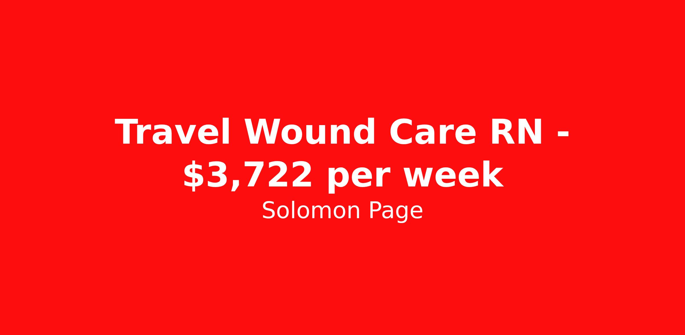 Solomon Page is seeking a travel nurse RN Wound Care for a travel nursing job in Bronx, New York. Job Description & Requirements Specialty: Wound Care Discipline: RN Start Date: 04/14/2026 Duration: 13 weeks 40 hours per week Shift: 8 hours, days Employment Type: Travel Our client is looking to add a Registered Nurse to their team. Job Details: Location: Bronx, New York Duration: 13 Weeks Start Date: 04/14/2026 Shift: 5x8 Days Qualifications: Current New York license Excellent interpersonal skills including patience, empathy, and compassion Effective communication skills, including active listening, writing, speaking and reading comprehension Fast and adaptive problem-solving abilities Ability to stand for long periods of time If you meet the required qualifications and are interested in this role, please apply today. Why Work with Us The success of Solomon Page is defined by our people. Offering a comprehensive benefits package, travel nurses have immediate access to medical coverage and ReviveHealth virtual care. Additionally, you are offered access to dental and vision coverage, commuter benefits, a 401(k) plan, flexible spending, referral bonuses, ongoing training, and more. As an ESOP company, Solomon Page offers an employee stock ownership plan to all consultants. As a member of our traveler community, you will join a nurturing culture that fosters your career goals. Solomon Page can connect you with your next opportunity – whether it is in your hometown, or you are looking to travel to a new destination. About Solomon Page Healthcare & Medical Staffing Accredited by the Joint Commission with the Gold Seal of Approval, Solomon Page prides ourselves in developing long-term relationships with healthcare providers based on trust and respect. Our experienced Healthcare and Medical Staffing experts are committed to providing safe and quality patient care through our wide network of travel nurses, locum tenens, and allied resources. For more information and additional healthcare opportunities, visit: solomonpage.com and connect with Solomon Page on Instagram, Facebook, Twitter, LinkedIn, and TikTok. 432186 Solomon Page Job ID 432186. Pay package is based on 8 hour shifts and 40 hours per week (subject to confirmation) with tax-free stipend amount to be determined. Posted job title: nurse - rn - wound care | bronx, new york About Solomon Page Founded in 1990, Solomon Page has grown to be a leader in the staffing industry. As a member of our healthcare provider community, you will join a nurturing culture that fosters your career goals. We have the network and resources to connect you with your next opportunity – whether it is in your hometown, or you are looking to travel to a new destination. Accredited by the Joint Commission with the Gold Seal of Approval, Solomon Page prides itself in developing long-term relationships with healthcare providers based on trust and respect. Headquartered in New York with offices throughout the United States our experienced healthcare and medical staffing experts are committed to providing safe and quality patient care through our wide network of travel nurses, locum tenens, and allied resources. For more information and additional healthcare opportunities, visit: solomonpage.com /healthcare and connect with us on Facebook , Twitter , Instagram , Tik Tok , and LinkedIn. ReviveHealth Virtual Care: Available immediately. Receive free, 100% company paid, virtual care access. Upon commencement of your employment, Solomon Page offers automatic enrollment into ReviveHealth, which offers concierge, membership-based access to virtual primary care, urgent care, mental health therapy, a vision program, and prescription medications. Medical Coverage : Available immediately . Whether you are looking to enroll in single or family insurance, you have immediate access to quality coverage. Dental Coverage : Available the 1st of the month after your hire date . We offer dental insurance to you and your dependents. Vision Coverage : Available the 1st of the month after your hire date . We offer vision insurance to you and your dependents. Commuter Benefits: Available the 1st of the month after your hire date . Set aside pre-tax money to pay for public transportation. 401K Plan: Associates can enroll in the 401K plan after they have worked 1000 hours. ESOP Benefits: As an ESOP company, Solomon Page offers an employee stock ownership plan. Referral Bonus: A cash bonus is offered for referring a candidate to Solomon Page who gets placed. Training & Support: Training programs and ongoing career coaching and support is offered to consultants. Benefits Medical benefits Dental benefits Vision benefits 401k retirement plan Referral bonus