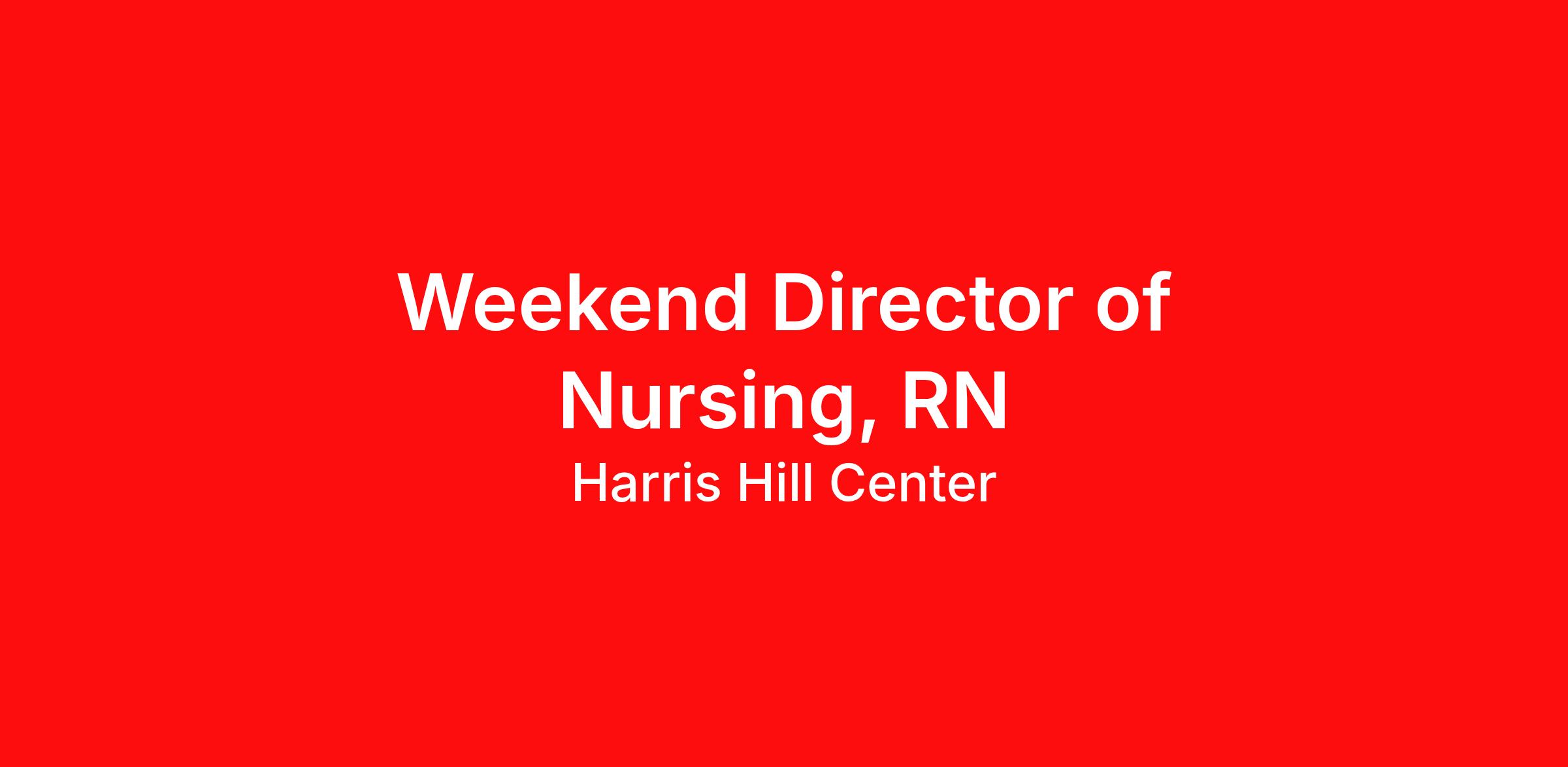 Overview: Harris Hill seeks a Weekend Supervisor Must be on call and work 12hrs to be paid for a full 40hr week At Genesis Healthcare, we are dedicated to improving the lives we touch through the delivery of high-quality care and exceptional service. As a leading provider in the long-term care industry, we believe in fostering a collaborative, inclusive and supportive work environment where every team member is valued and empowered to make a difference. Whether you're an experienced professional or just starting your career, we offer opportunities for growth, development, and advancement in a range of roles. Join us in our mission to enhance the well-being of our patients and residents while making a meaningful impact in the communities we serve. Responsibilities: The Weekend Director of Nursing is responsible for the overall operations of the nursing center starting at 5 PM on Friday until 7 AM on Monday. *Report to the Director of Nursing *Visible leadership position responsible for the delivery of high-quality and cost-effective patient care while achieving positive clinical outcomes, and patient/family and employee satisfaction *Ensure that care delivery is consistent with the mission, vision, values and policies of Genesis HealthCare and in accordance with accepted standards of practice, state and federal regulations and licensing requirements. *Mentor, educate, coach and discipline nursing team members. *Collaborate with physicians and other medical professionals, and serve as a resource to all staff *May also provide direct patient care to maintain skills. Qualifications: * Must be a graduate of an accredited school of nursing. * Associate Degree in Nursing, 3 years of nursing experience. * Diploma, 3 years of nursing experience. * BSN, 2 years nursing experience. Successful nurse leadership experience for a minimum of one year. Current licensure by the State Board of Examiners of Nurses in the Center's state. Must maintain current BLS/CPR certification (All SNFs and Behavioral Centers; ALFs/ILFs as required by State) Benefits: *Variable compensation plans *Tuition, Travel, and Wireless Service Discounts *Employee Assistance Program to support mental health *Employee Foundation to financially assist through unforeseen hardships *Health, Dental, Vision, Company-paid life insurance, 401K, Paid Time Off *Free 24/7 virtual health care provided by licensed doctors for all Anthem medically-enrolled employees and their immediate family members *On-Demand Pay Program that allows for instant access to a portion of the money you’ve already earned We also offer several voluntary insurances such as: *Pet Insurance *Term and Whole Life Insurance *Short-term Disability *Hospital Indemnity *Personal Accident *Critical Illness *Cancer Coverage Restrictions apply based on collective bargaining agreements, applicable state law and factors such as pay classification, job grade, location, and length of service. Posted Salary Range: USD $95,680.00 - USD $105,040.00 /Yr.