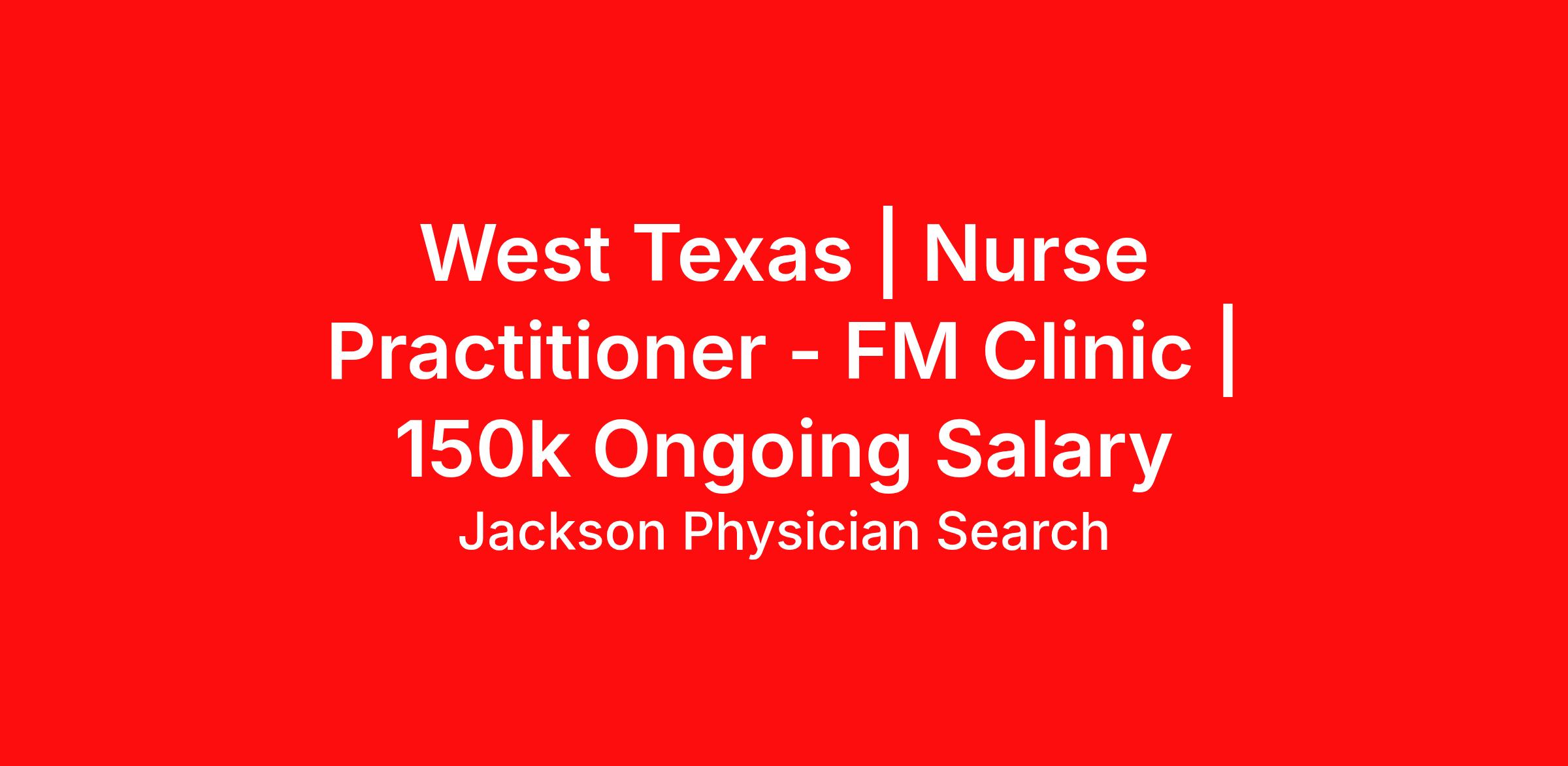 Family Medicine clinic on the hospital campus has a great employed opportunity for a PA or FNP to join their team. Top of the market compensation for an experienced FNP or Primary Care PA: • Independently seeing 18-20 patients per shift, NO CALL • Supervising Physician is available 24/7. Full support team in place. • Outpatient only - open to 4.5day or 5day work week. NO weekends required • High salary - top 75th percentile, plus benefits • Fantastic benefits- health, dental, vision, retirement, PTO, CME allowance • Investment plan mandated 7% annual growth | Match of 175% upon retirement • Sign-on bonus and full relocation reimbursement Strong sense of community - great for families, married no kids, or singles - within hour of 3 larger cities (200k): • Rural family-friendly community with a very strong economy - oil/gas, agriculture, wind farms • 2 Recreational lakes within 40mins - boating, fishing, relaxing on the water • Low cost of living, affordable homes/lots, live on the water or near the golf course • Ranked as a top 10 community to live in Texas • Excellent school options For more information and further consideration, please contact: Schedule Call: https://calendly.com/jeff-with-jackson/phonevisit Jeff Payne Direct: 469.909.6679 Email: jpayne@jpsearch.com Specialty: Nurse Practitioner Employment Type: Full Time